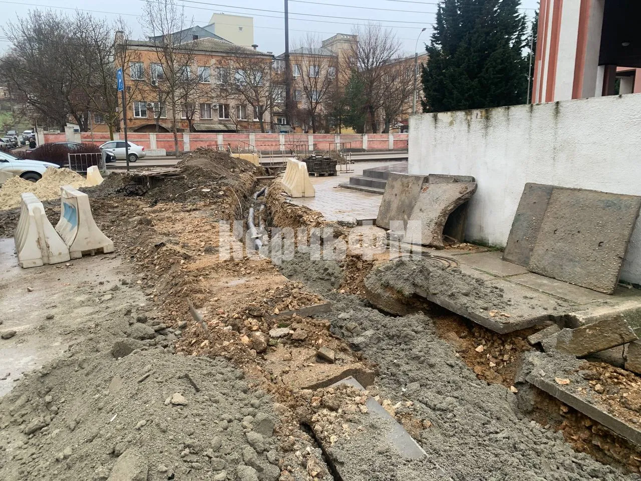 Трубы отопления к больнице водников в Керчи уложили, асфальт требует восстановления