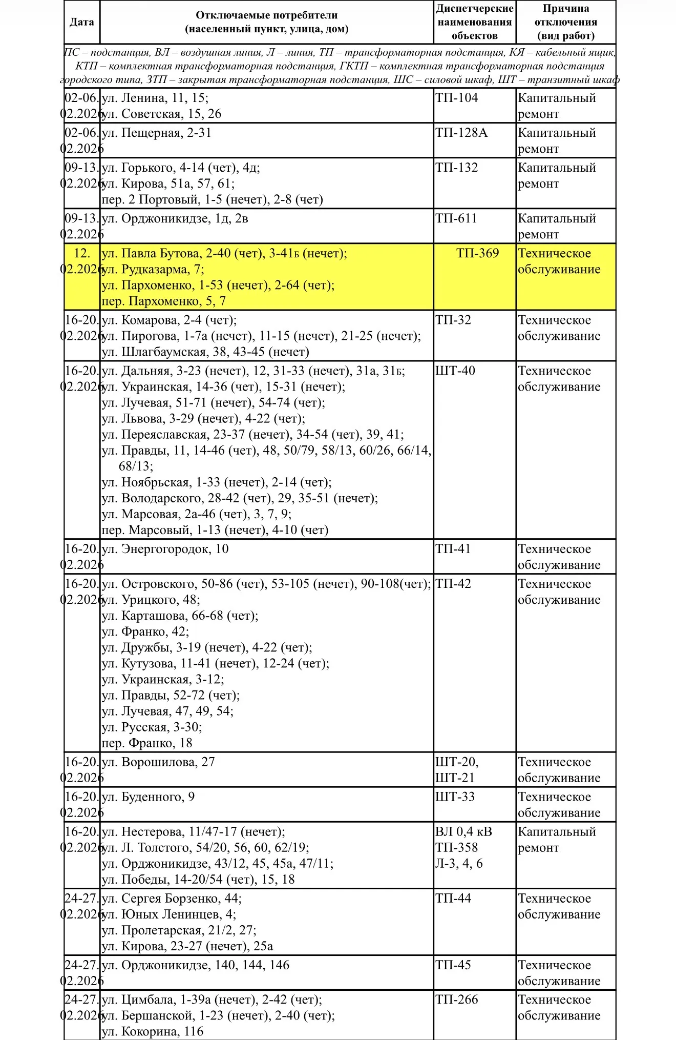 Керчанам сообщают график плановых отключений электроэнергии на февраль