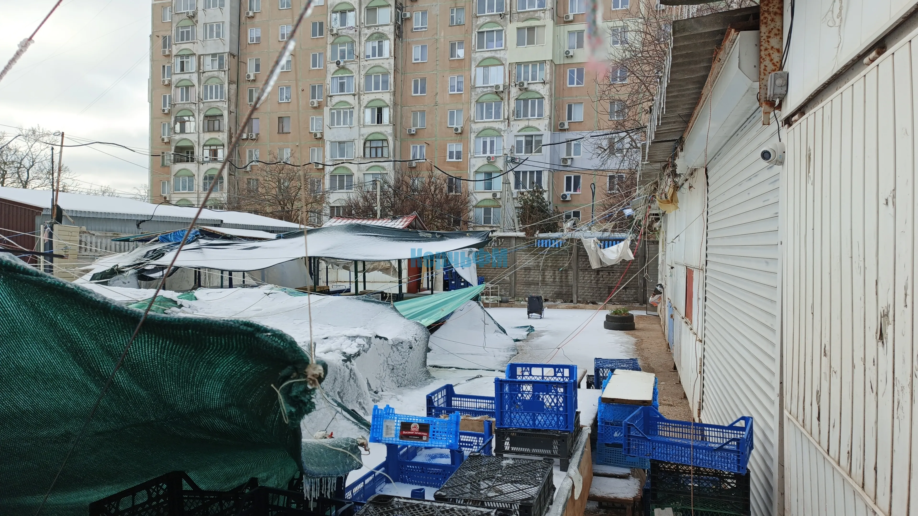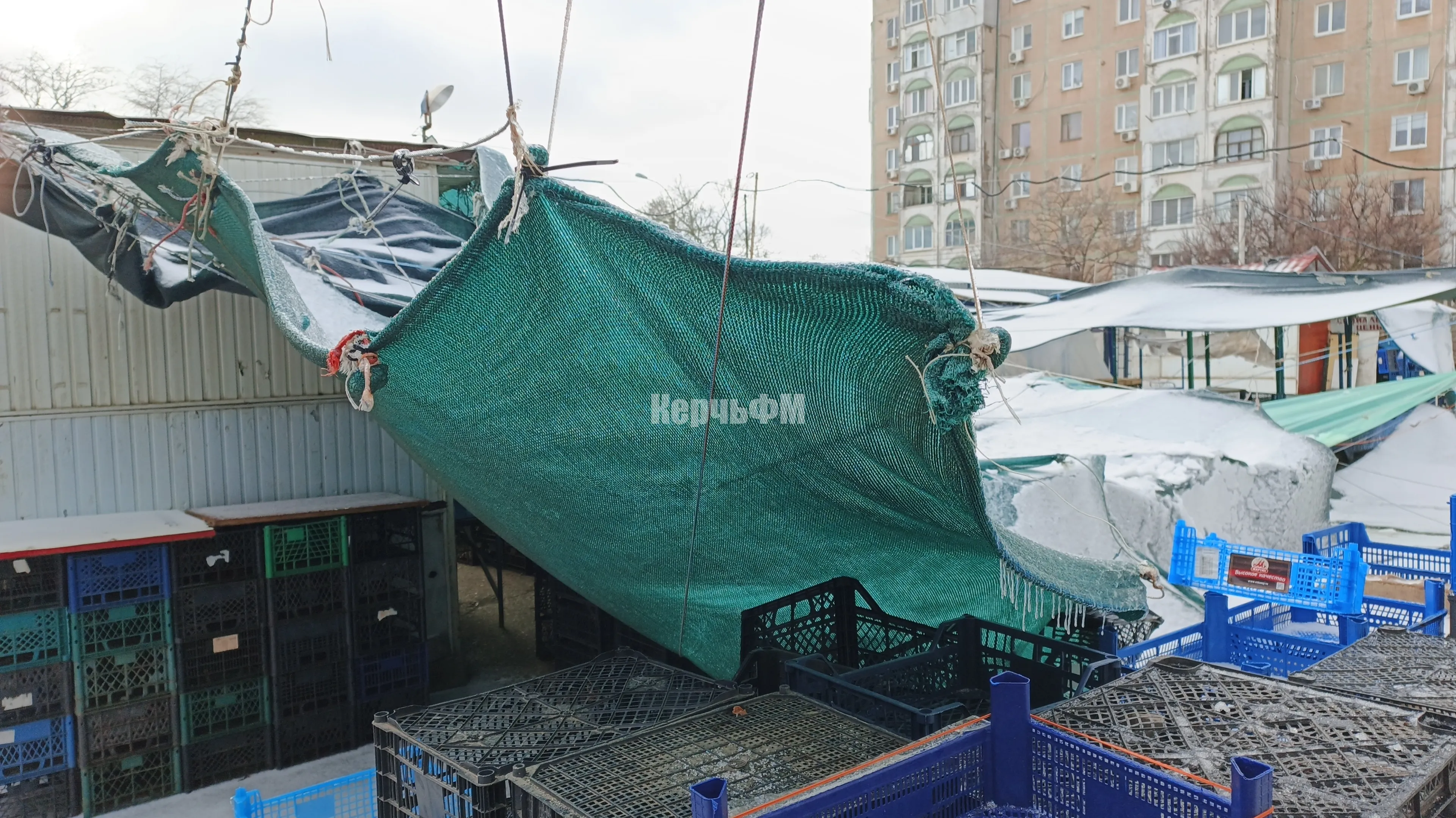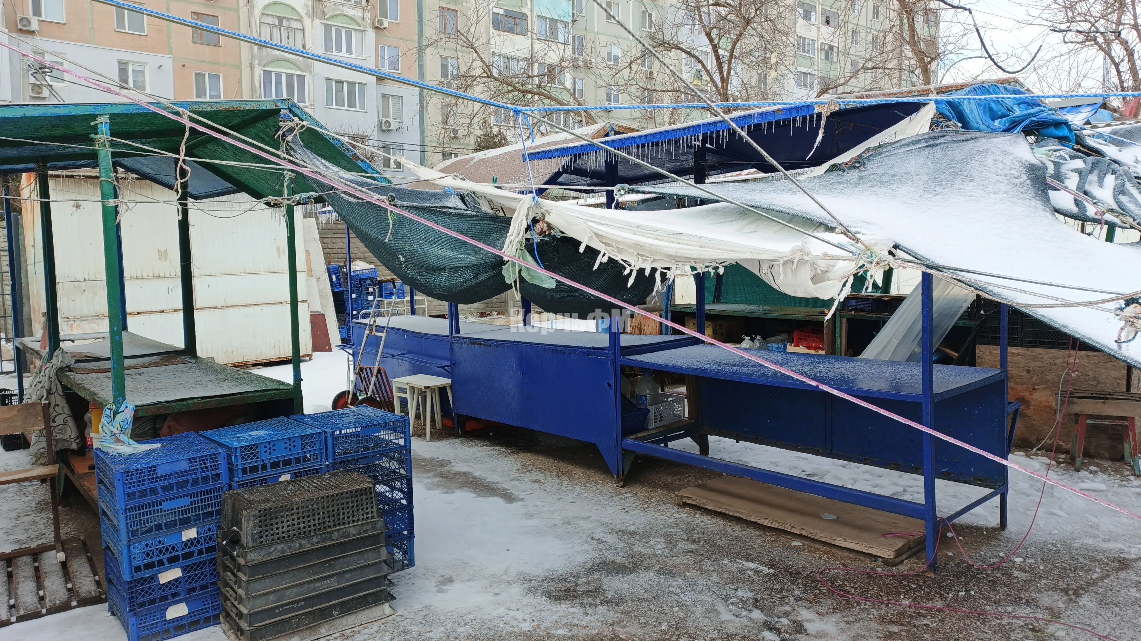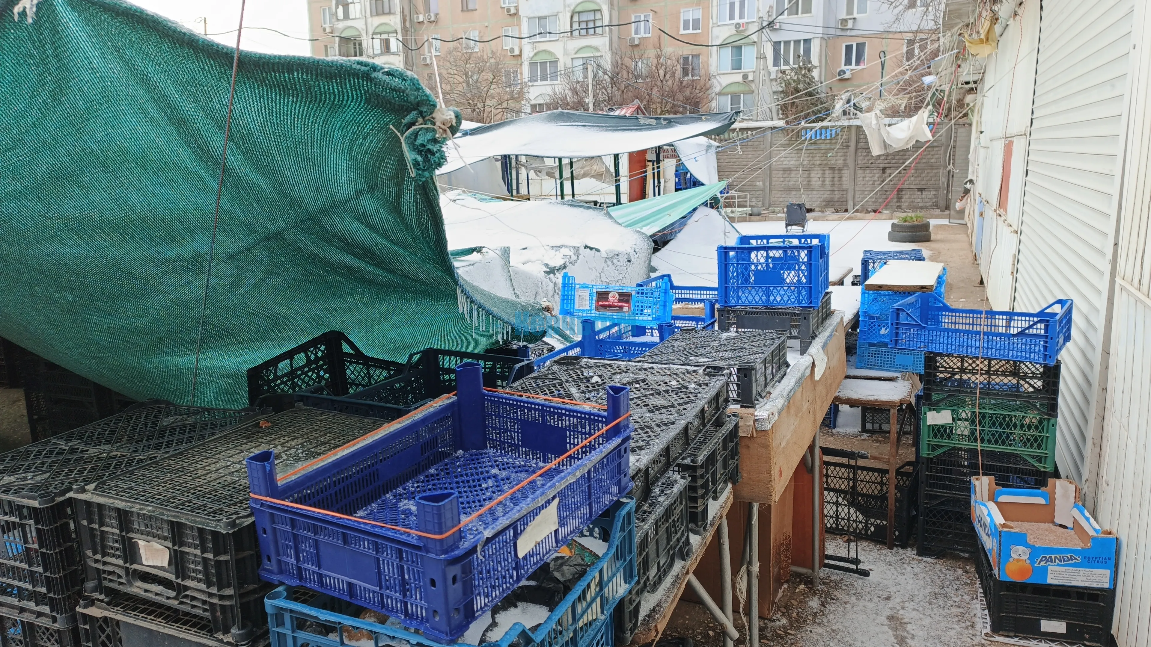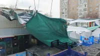 Ненадежное укрытие от дождей, сделанное из брезента, плащевой ткани и просто полиэтилена над овощным рынком Сморжевского, вызывало недоумение у местного населения давно.