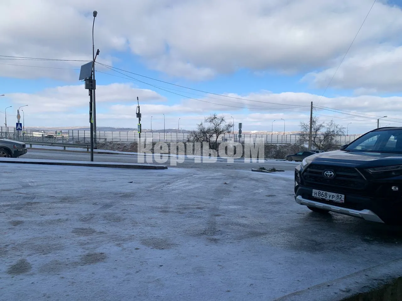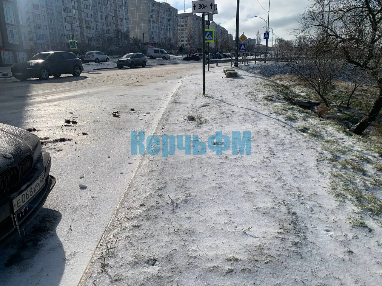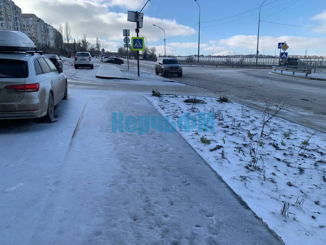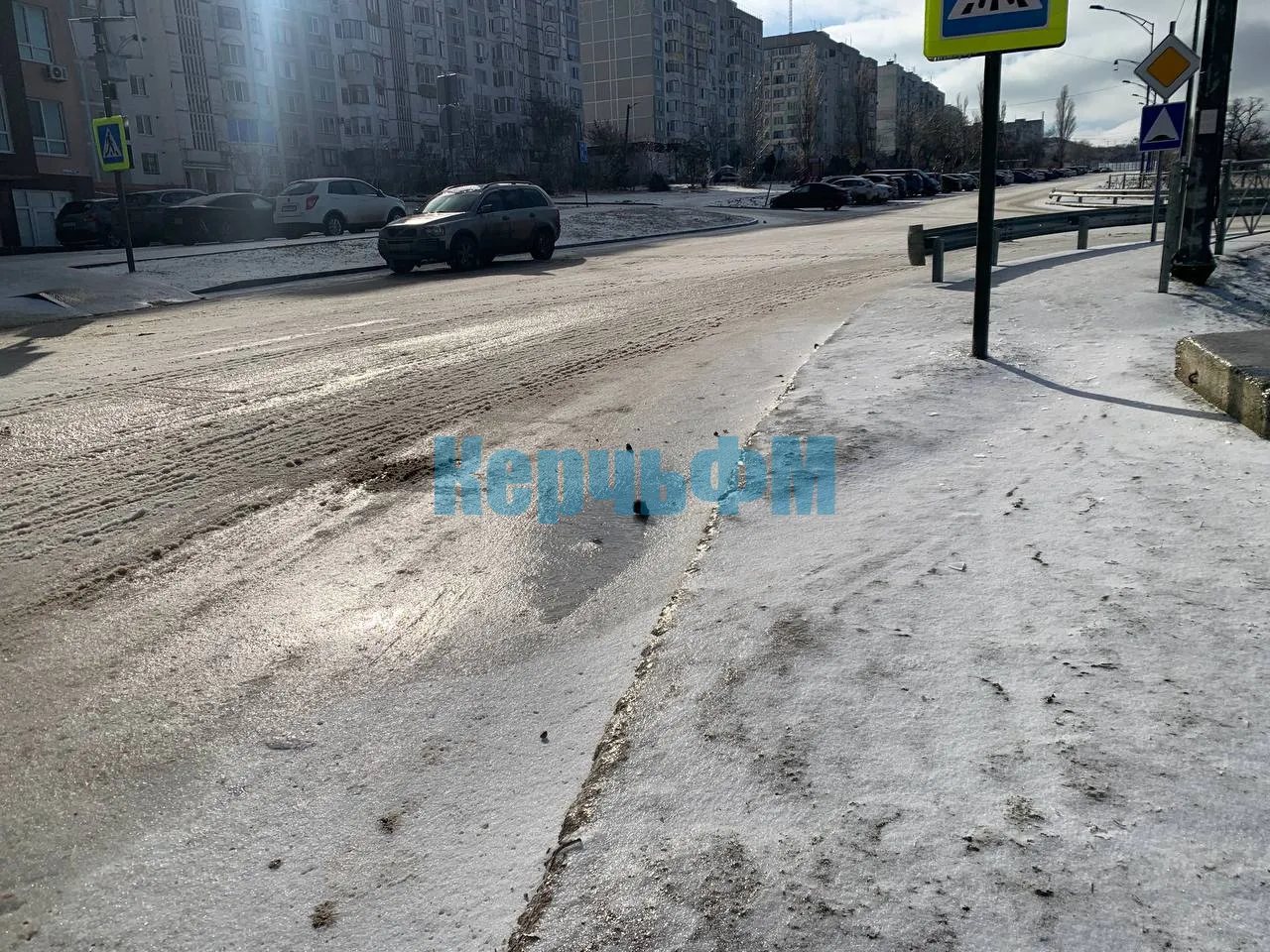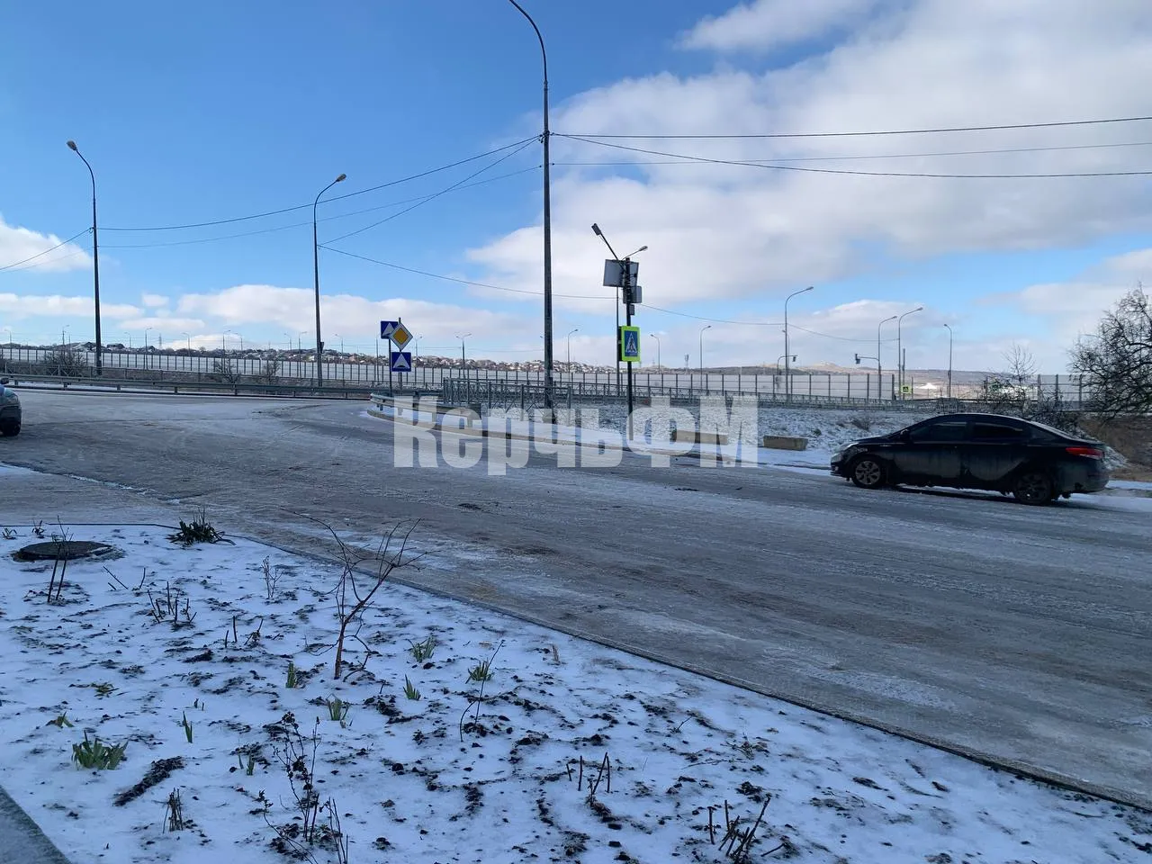 Сегодня днем в Керчи центральные автомагистрали с чистым и мокрым асфальтом. Оттаивают и второстепенные дороги.
