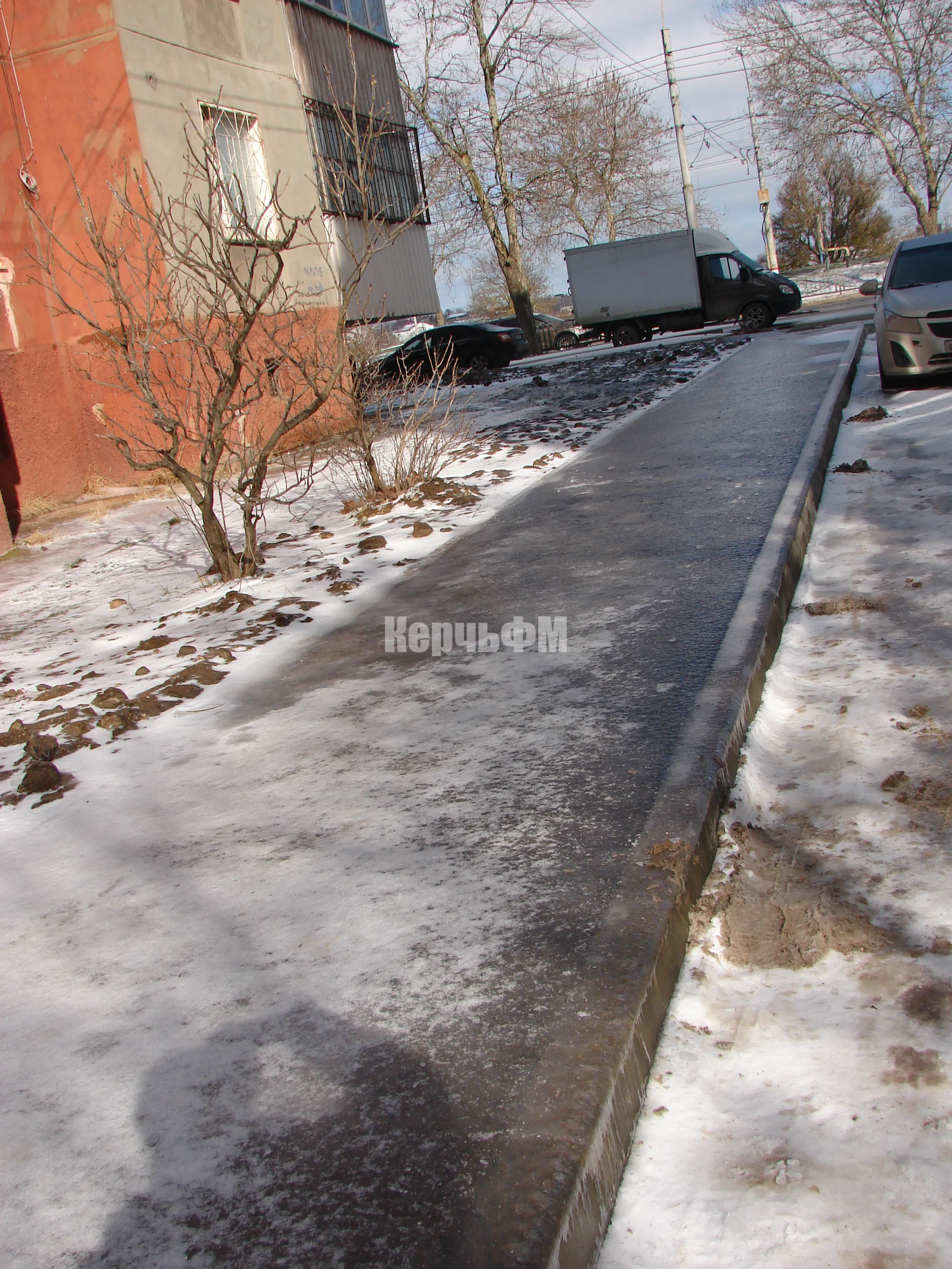 В отличие от этого дома, у соседних - № 16 и № 20, практически все дорожки обработаны песком, передает КерчьФМ.