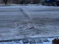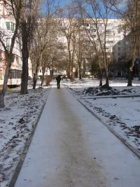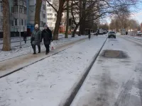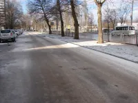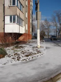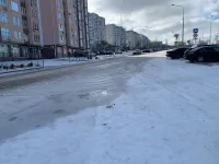 Сегодня на солнышке там уже наледь растаяла у входа в подъезд, но пройти к той же остановке "Промбаза" вдоль торца дома - проблематично.
