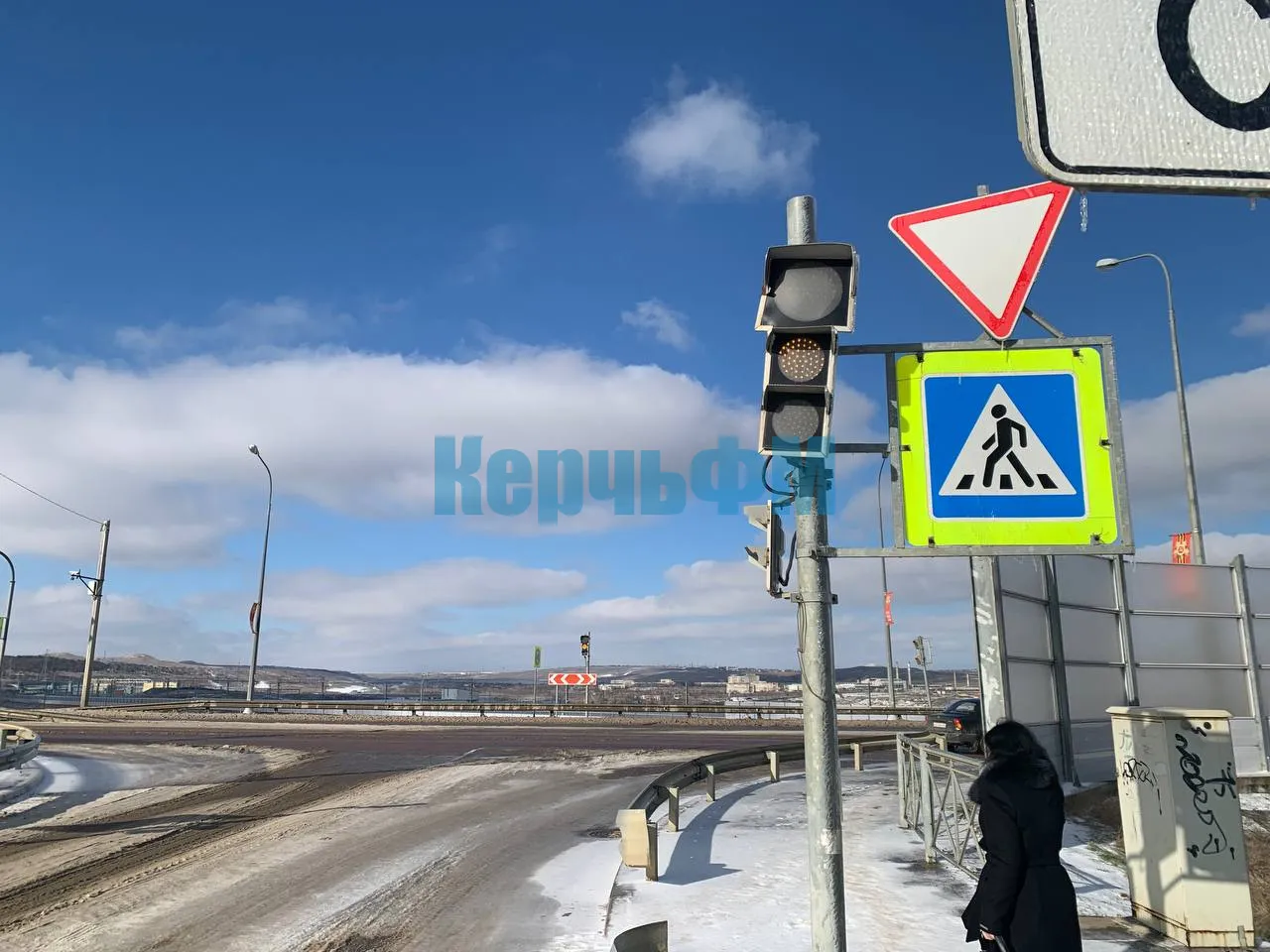 На самом путепроводе светофор в районе Верхнего Солнечного также мигает только желтым, передает КерчьФМ.