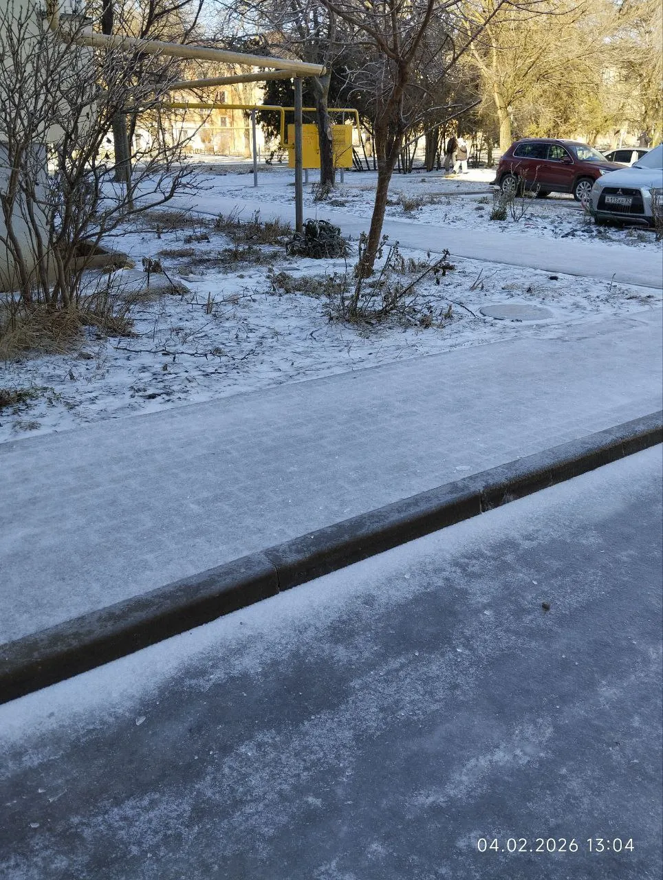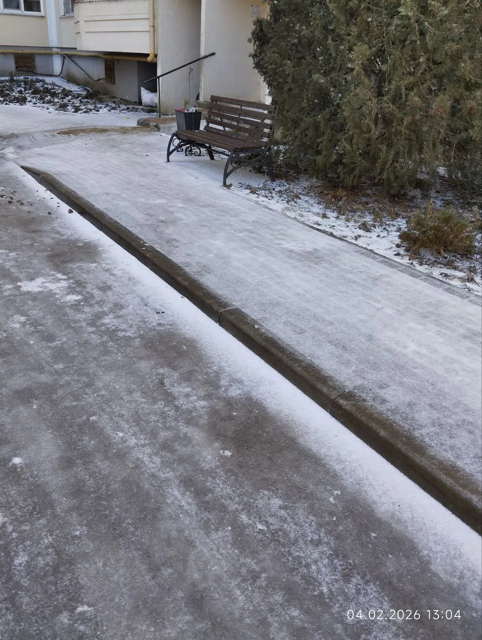 Тротуары не обработанны и на придомовых территориях на Войково УК МАСТЕР.