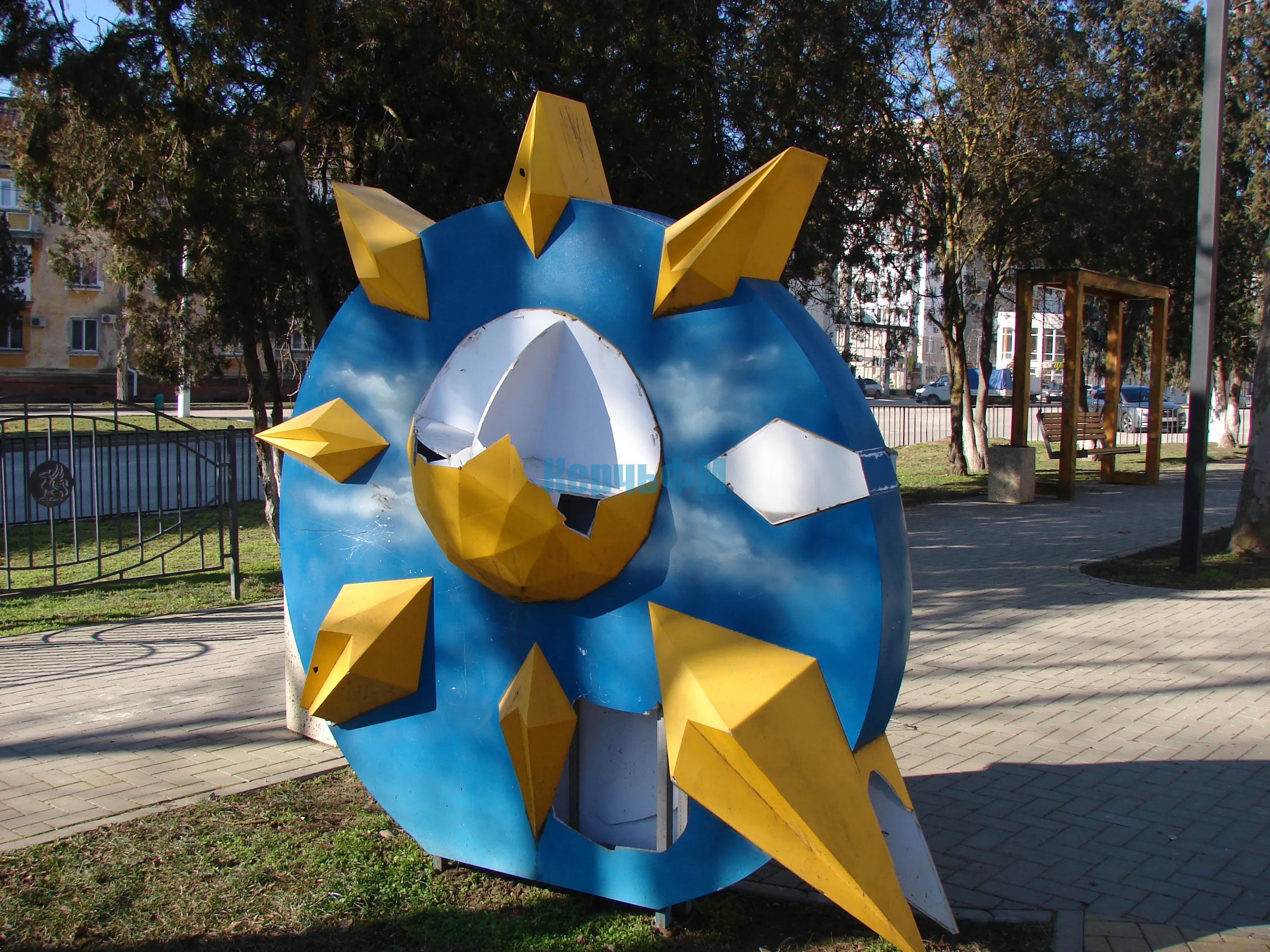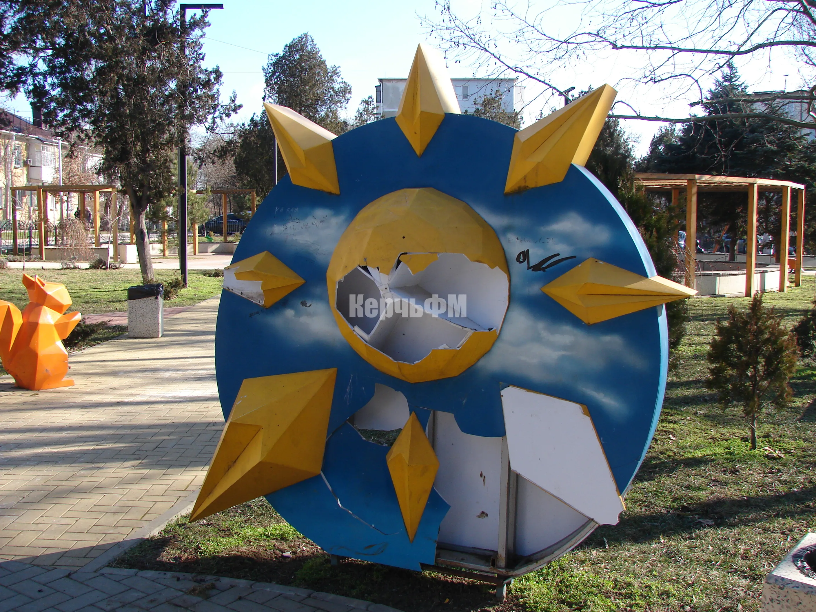Конструкция "Солнца" - определяющего атрибута Солнечного сквера - продолжает пребывать в поломанном состоянии.