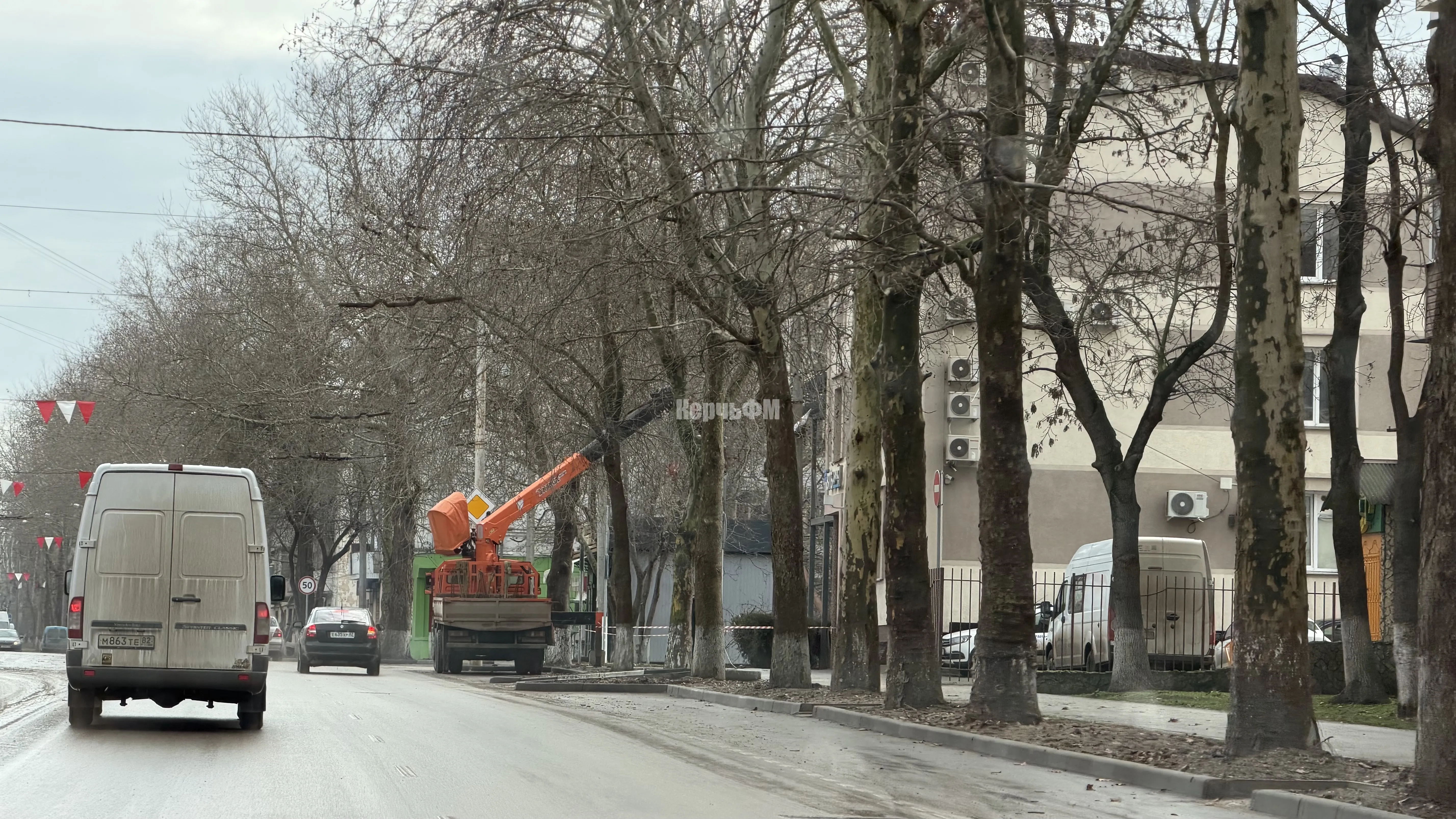 В Керчи 13 февраля на улице Горького производили обрезку деревьев. Работы проводили над пешеходной зоной, в связи с этим тротуар был  огражден сигнальной лентой, - передает КерчьФМ
