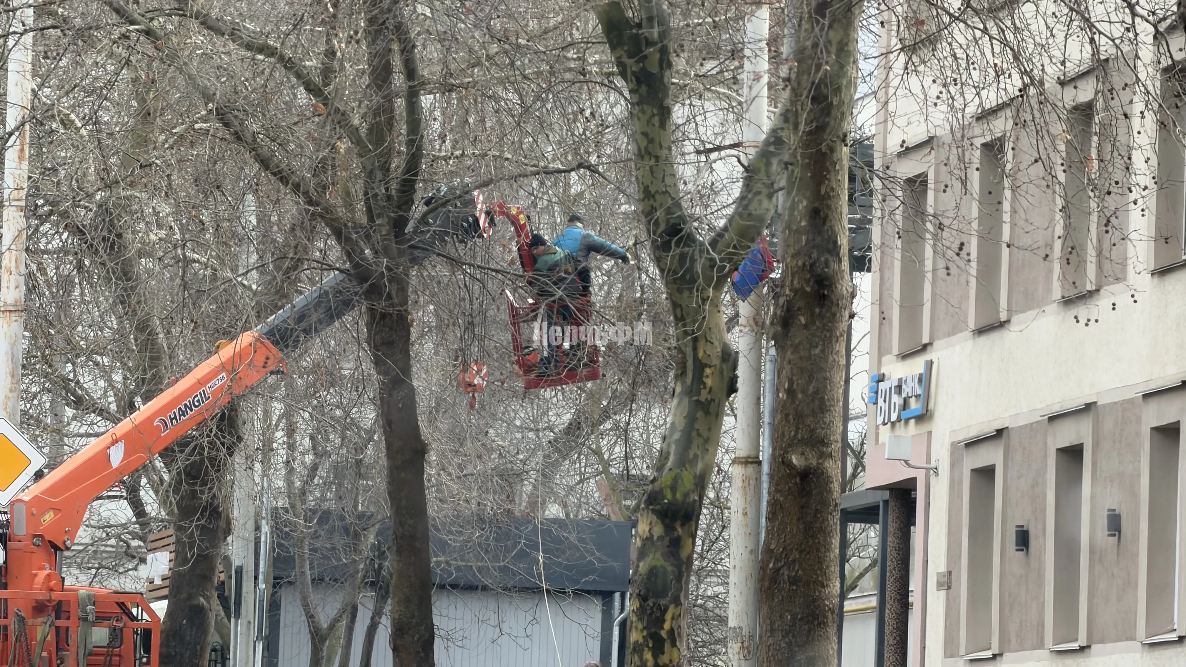 Рабочие спилили веток, которые соприкасаются с проводами.