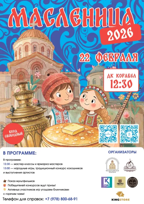22 февраля 2026 года - дата, которую стоит запомнить всем жителям и гостям Керчи! В этот день в ДК Корабел развернется настоящее народное гулянье, посвященное одному из самых ярких и любимых праздников - Масленице. Начало праздничной программы в 12:30, а вход на мероприятие - абсолютно свободный!