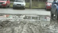Однако за прошедшее время дорожное покрытие так и не привели в порядок. Площадка остается в ямах и грязи, а посетителям рынка приходится идти по лужам.