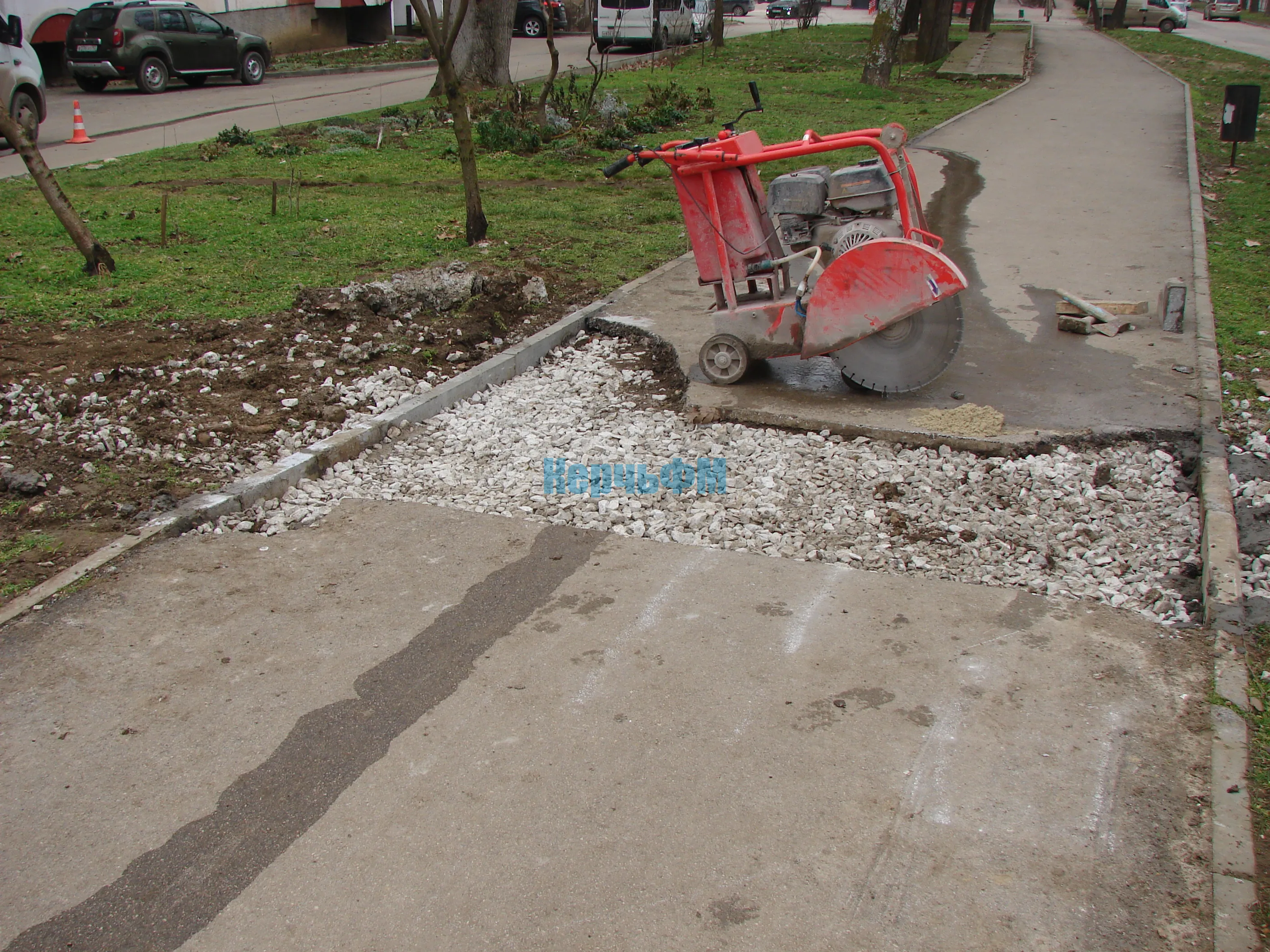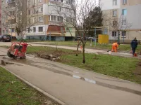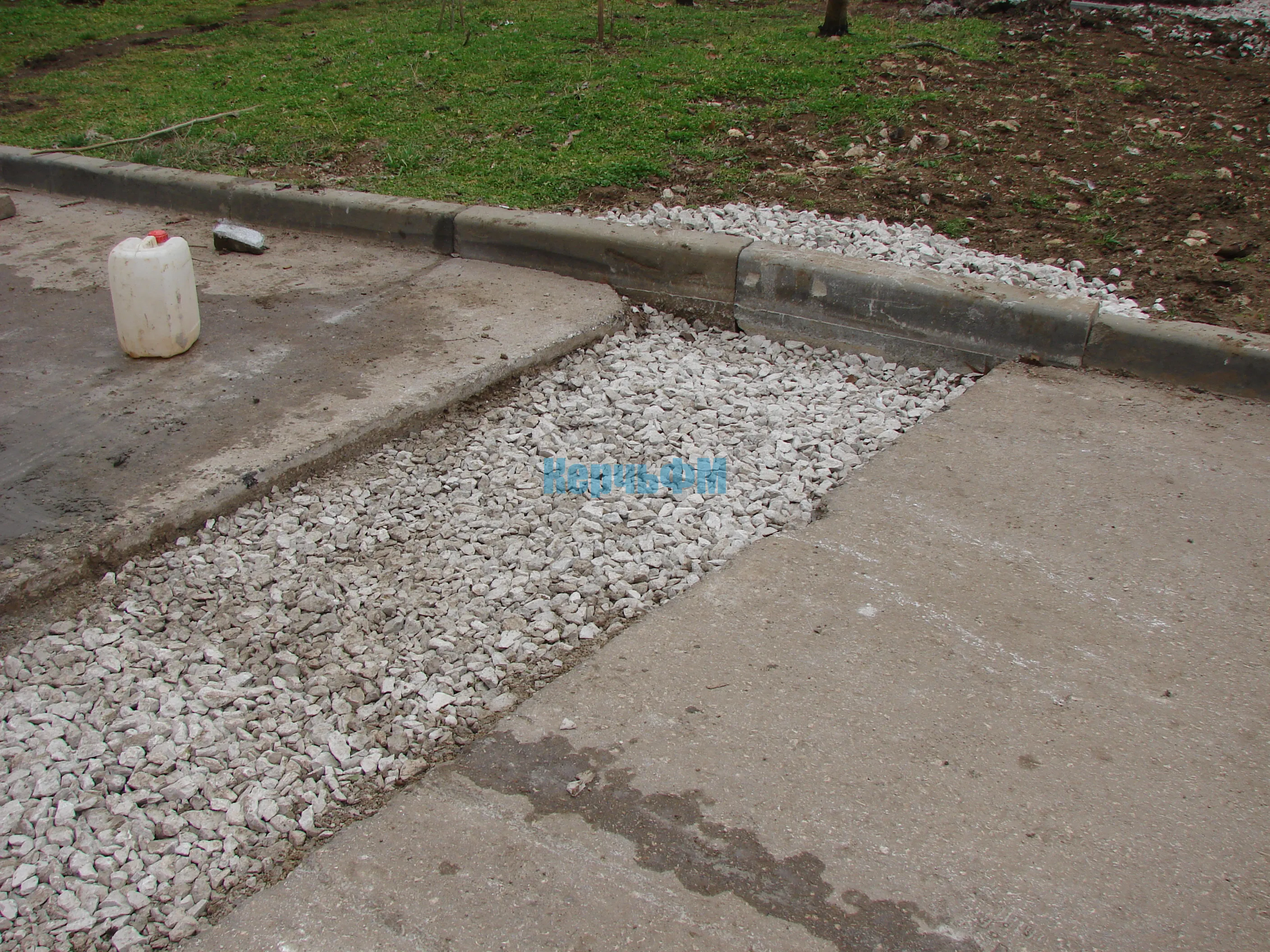 Сегодня дорожники устанавливают фрагменты бордюрного камня в местах разрушений у дома №22, передает КерчьФМ.