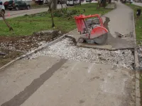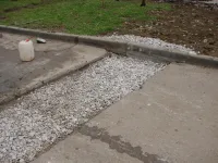 Поперечная траншея засыпана щебнем и готова к асфальтированию.