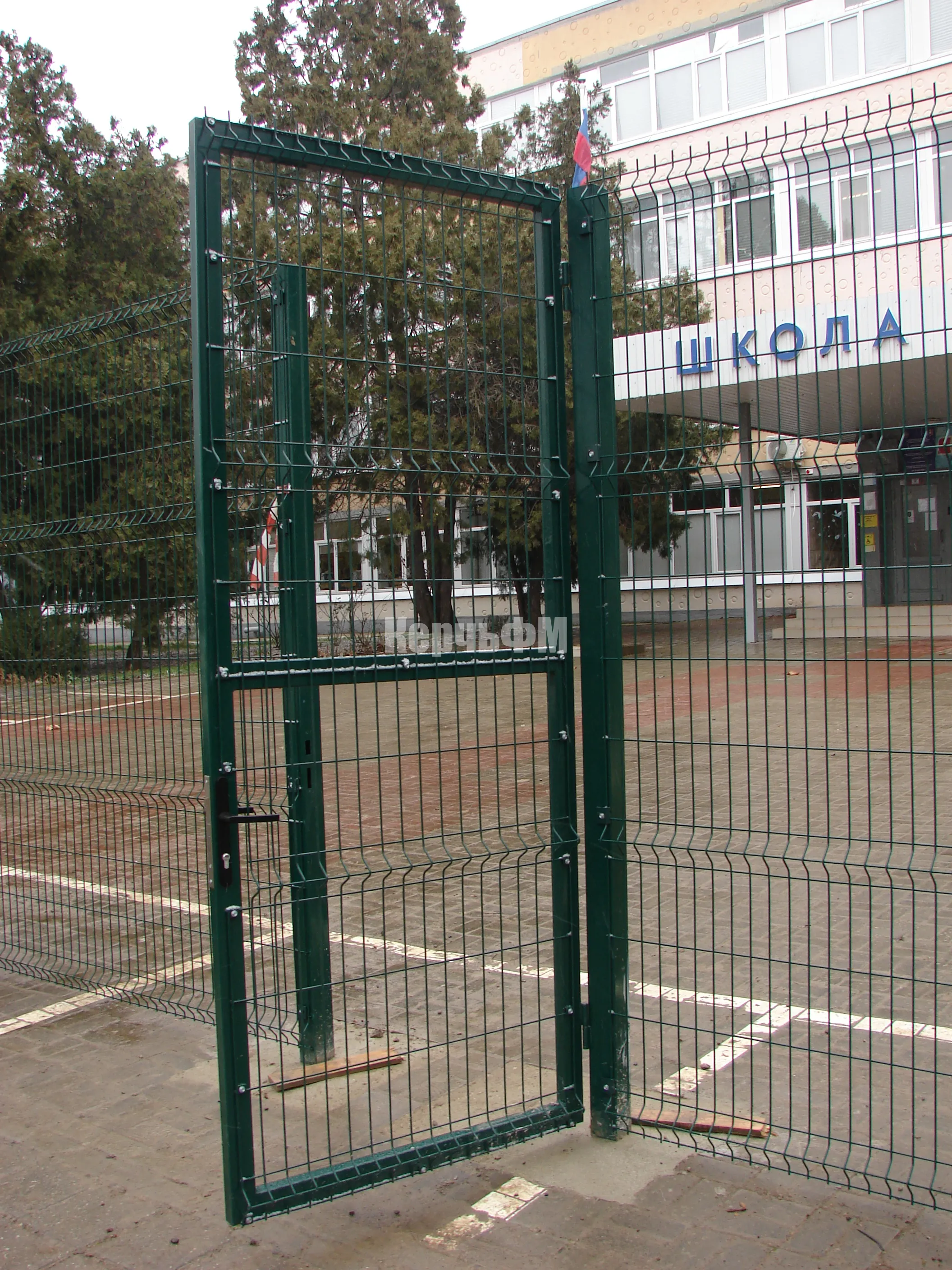 На двух входах для учащихся, педагогов и обслуживающего персонала сделаны калитки.