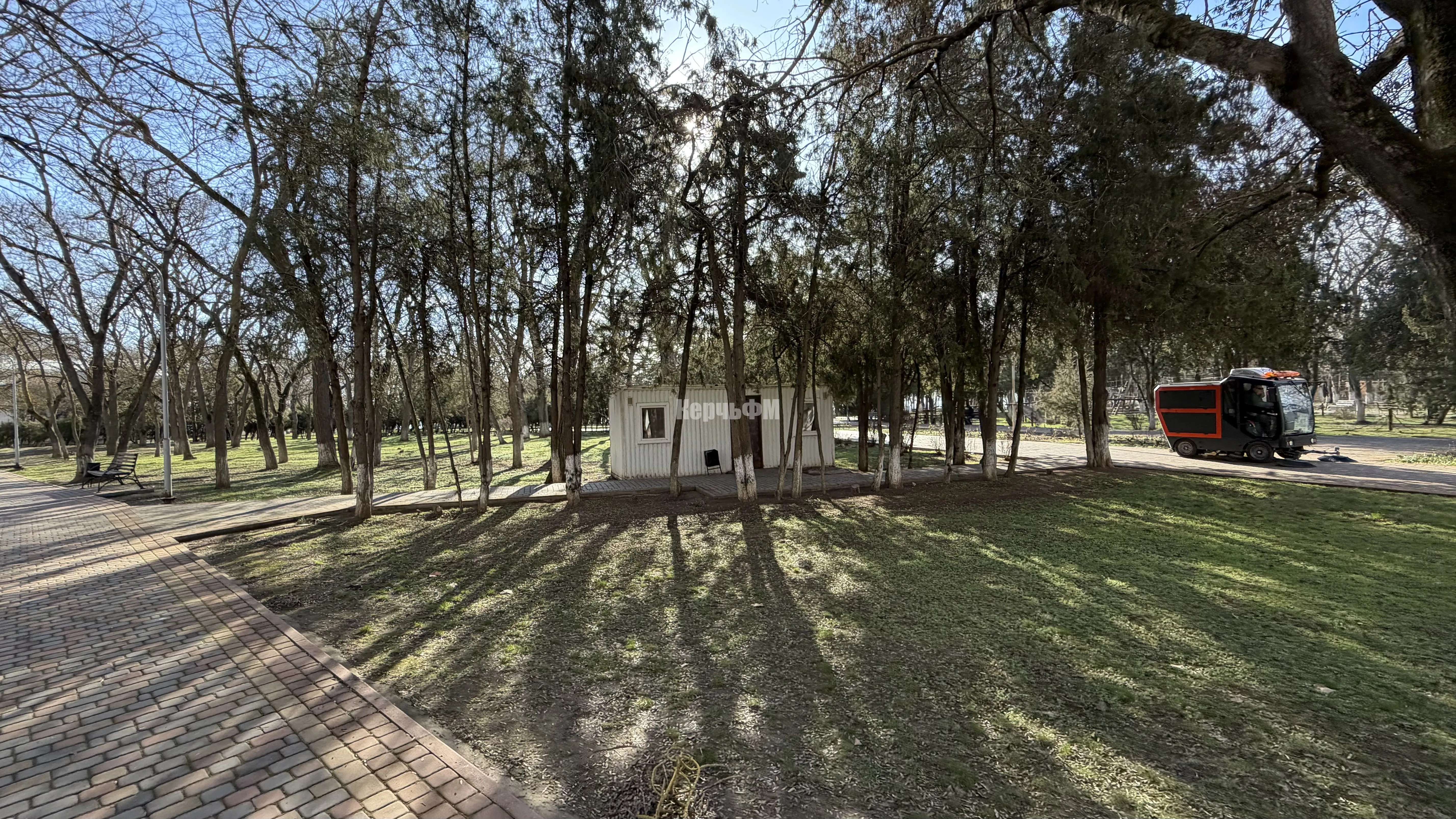 Тем временем помещение продолжает использоваться не по назначению - сотрудники, занимающиеся уборкой территории парка, организовали там склад хозяйственного инвентаря.