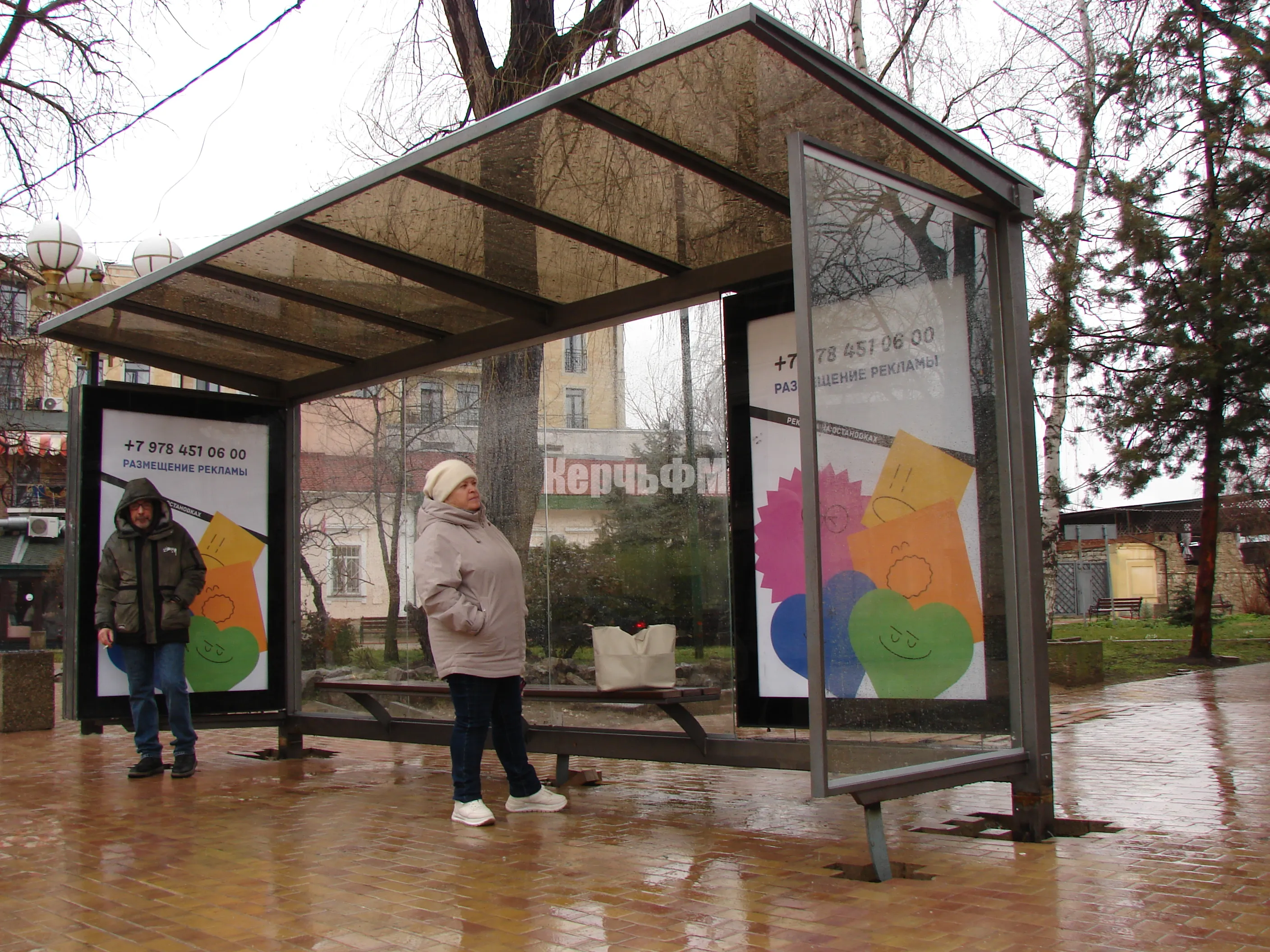 Старое остановочное укрытие убрали, и теперь керчанам есть, где укрыться от дождя, и в новом остановочном павильоне дождаться своего маршрута.