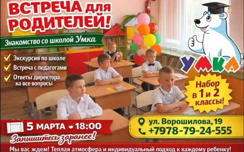 Частная школа «Умка» приглашает родителей на открытую встречу.