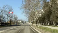 В связи с проведением работ движение транспорта в сторону автовокзала частично ограничено, проезд осуществляется по одной полосе. Перед началом уборки на участке были установлены предупреждающие дорожные знаки, информирующие водителей о временных изменениях схемы движения.