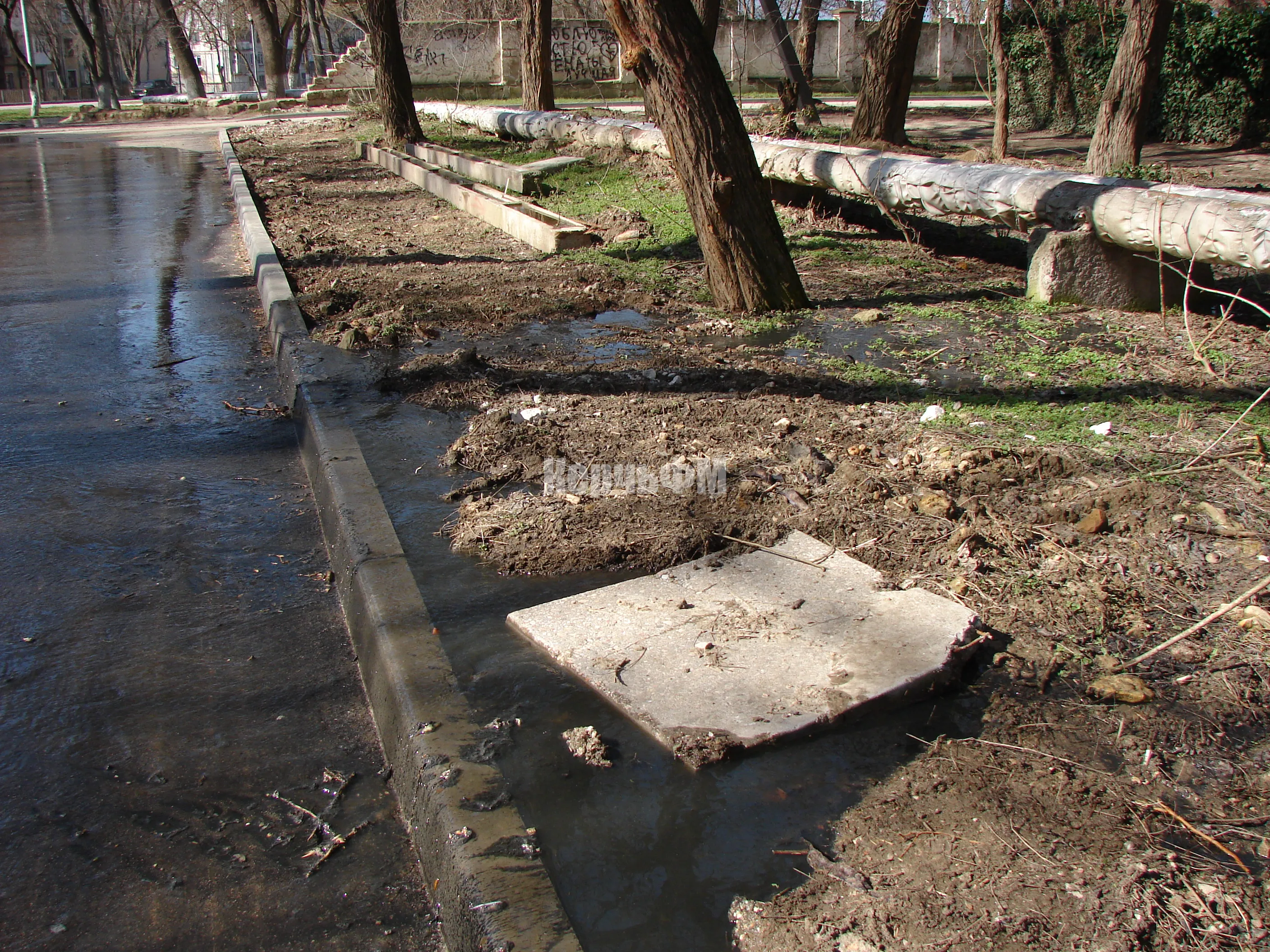 Это канализационные стоки из колодца, который находится на газоне рядом с бордюром.
