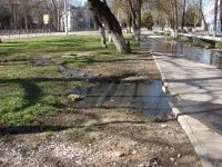 Сегодня по недавно отремонтированной дороге улицы Энгельса вновь бежит вода.