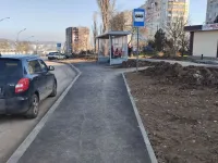 Обустроили тротуар вдоль дороги-дублера по шоссе Героев Сталинграда для комфортного подхода к остановкам общественного транспорта, магазинам и другим социально-значимым объектам. Старые остановочные павильоны заменили и обустроили 4 парковочных кармана.