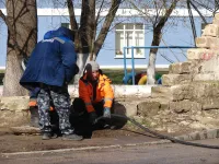 Пришлось снимать асфальт и приступать к прочистке колодца именно на перекрестке улиц 12 Апреля и Энгельса.