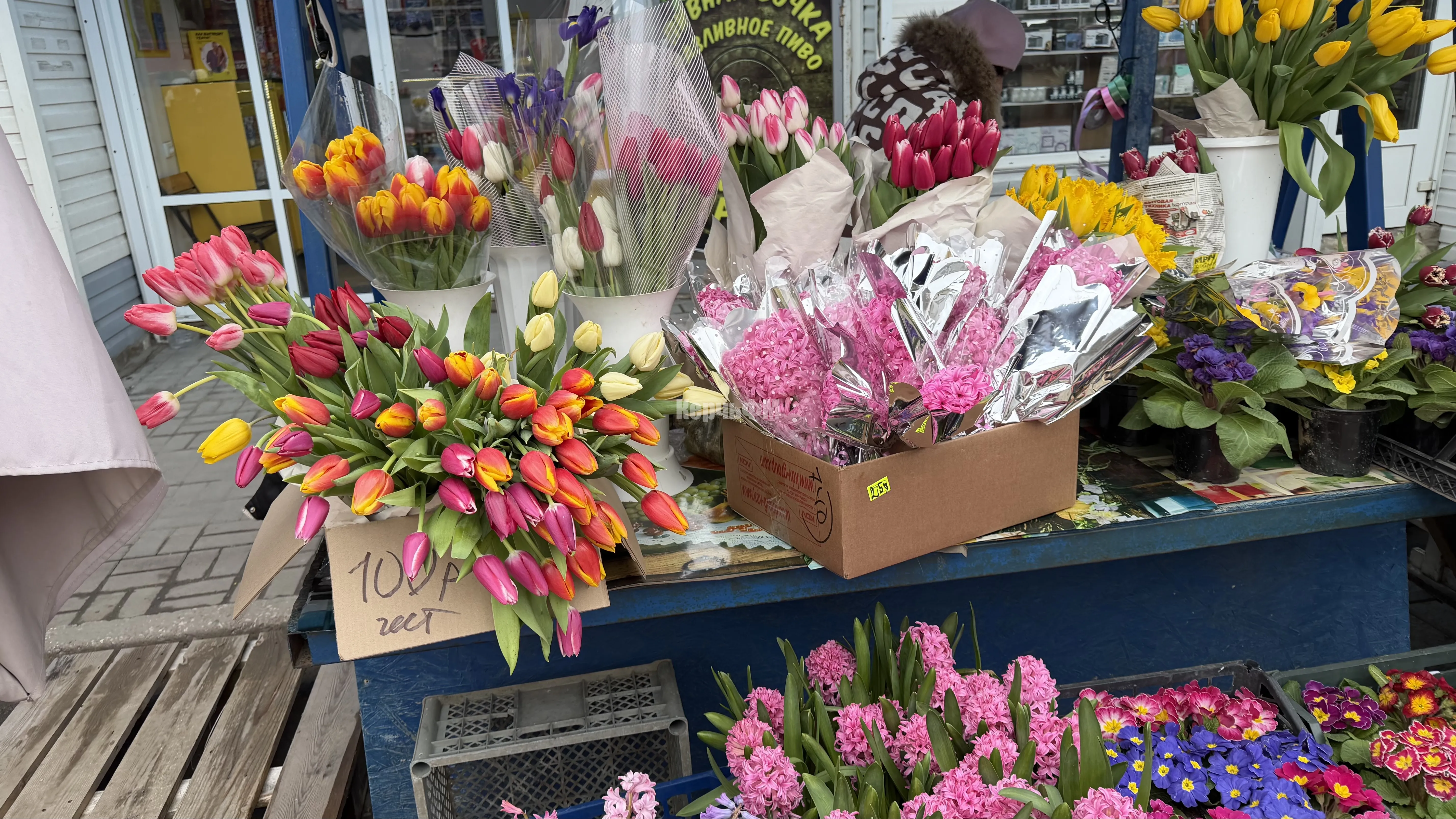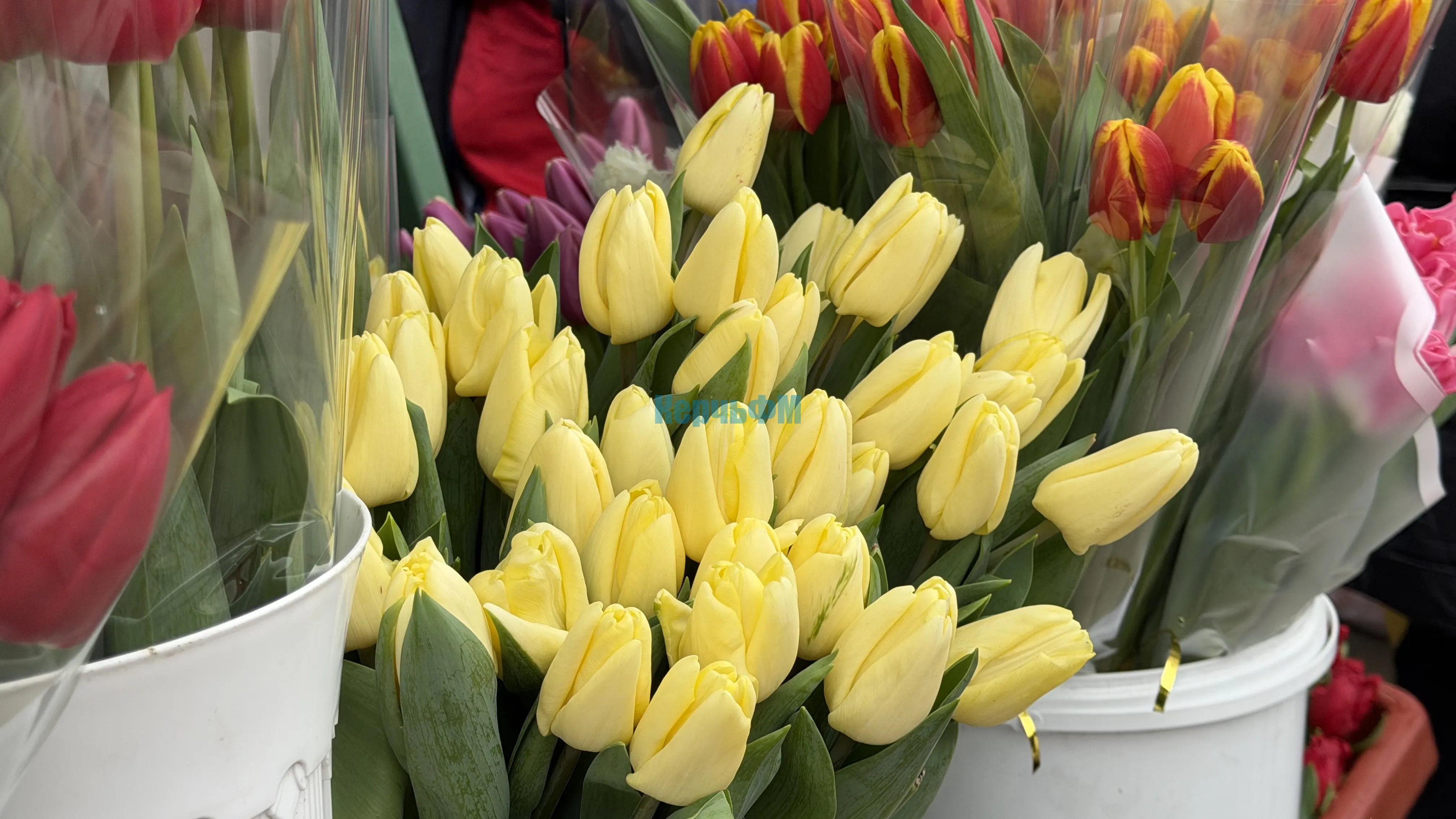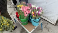 Еще один лидер праздничных продаж - это тюльпаны. Часть из них выращивают в теплицах Крыма и даже Керчи, поэтому они стоят дешевле. Цена одного цветка 100 рублей.