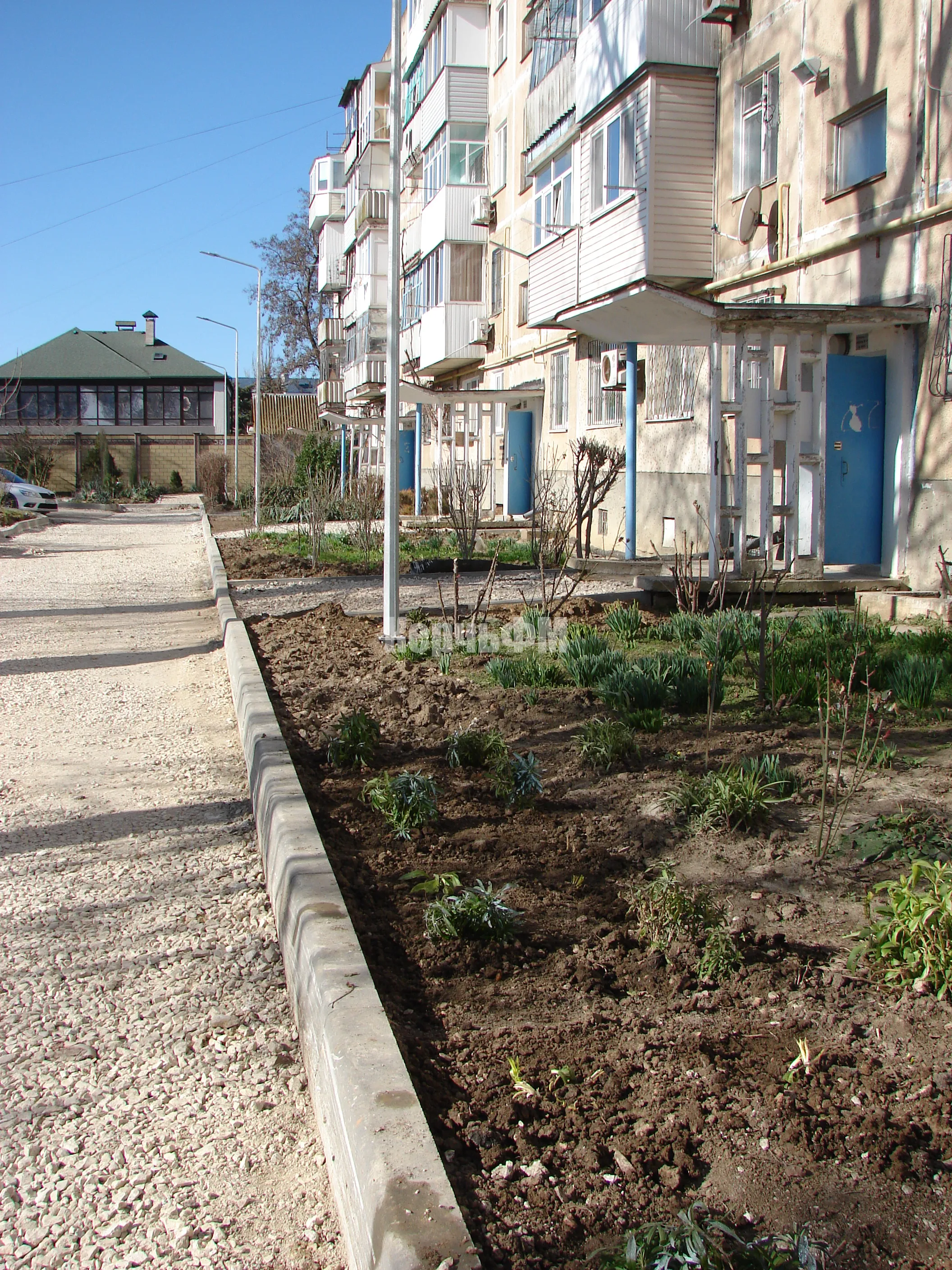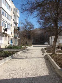 На очереди: подъездная дорога, тротуар и входные группы к подъездам пятиэтажного дома, передает КерчьФМ.