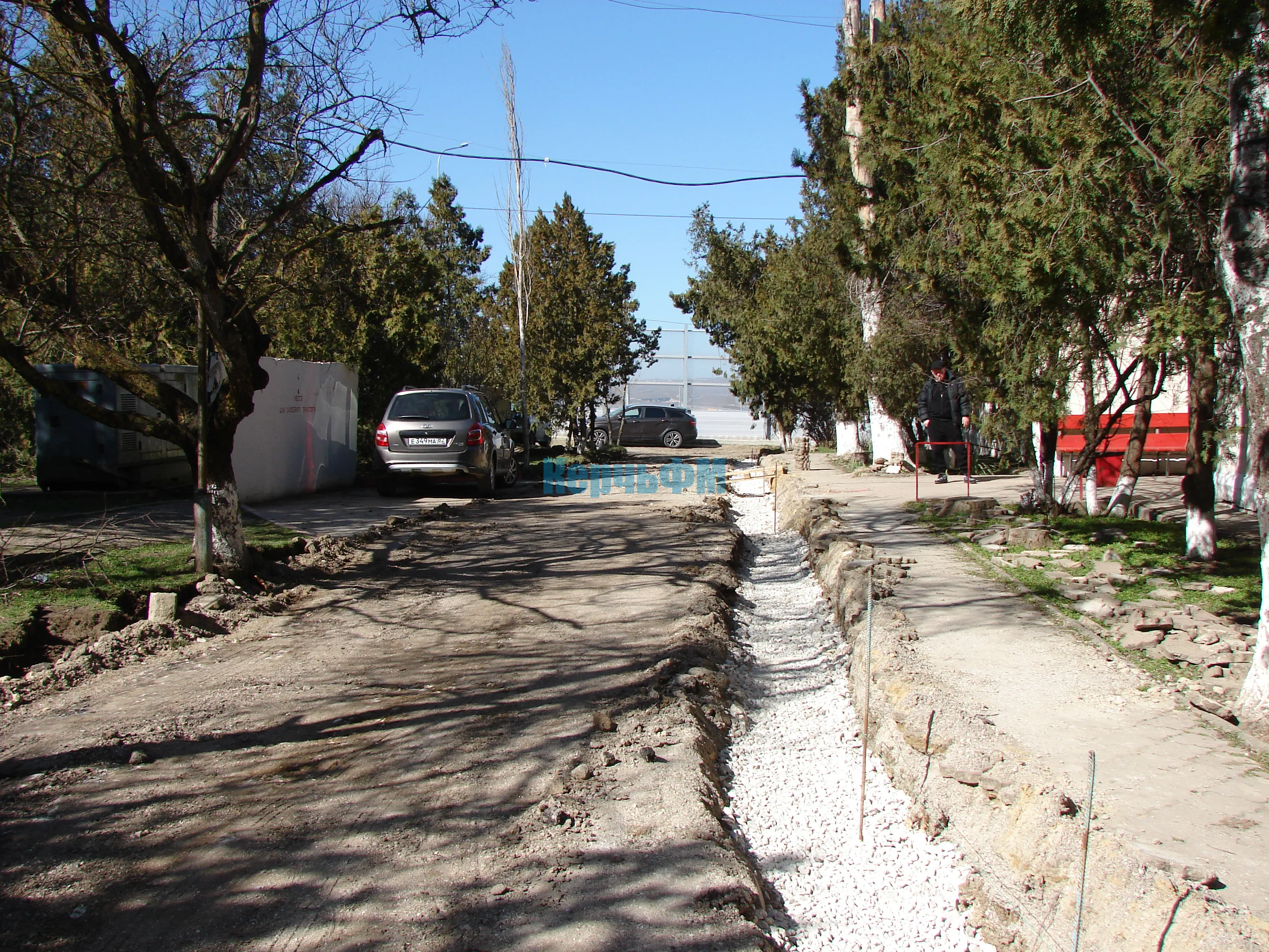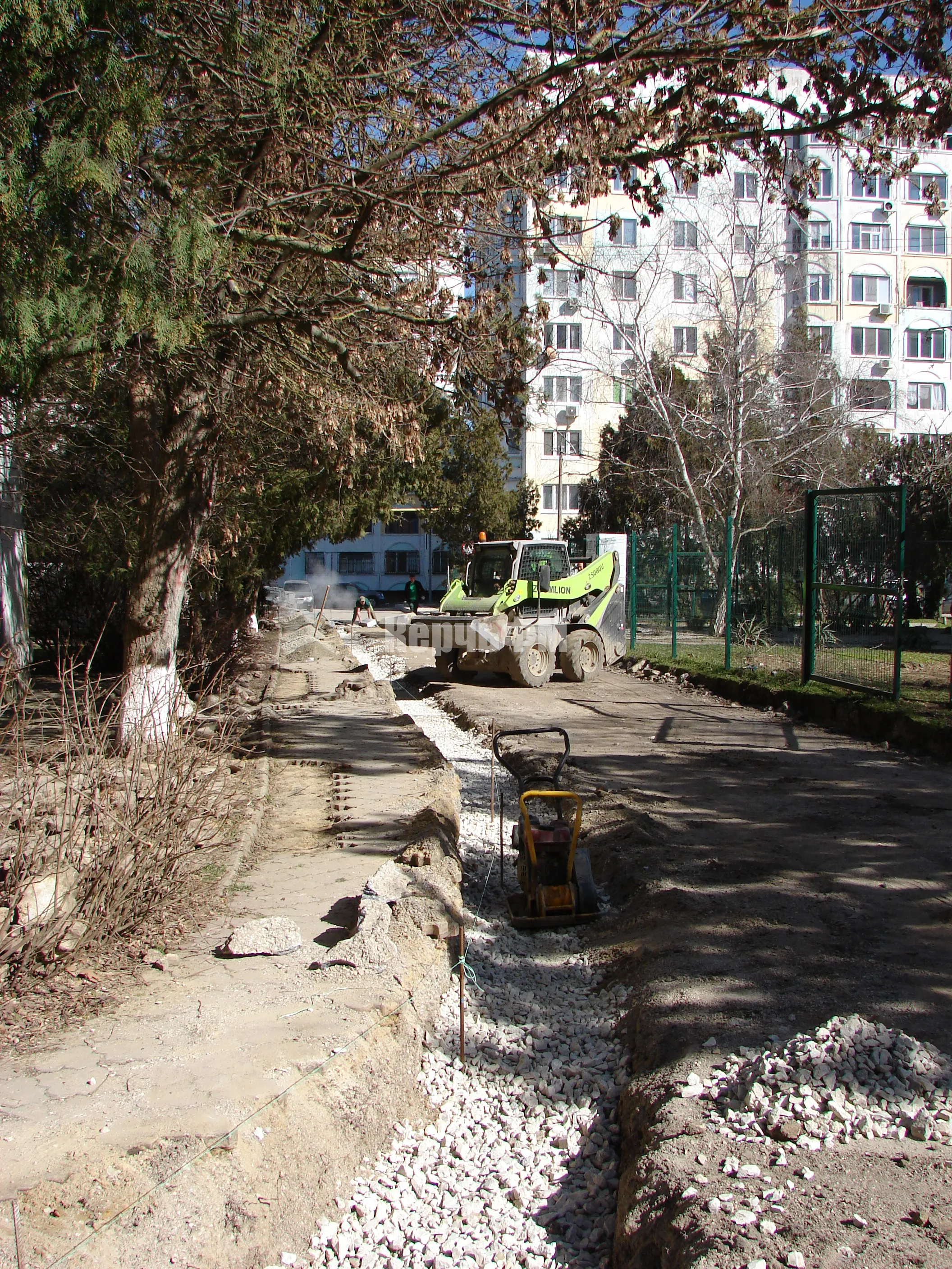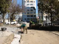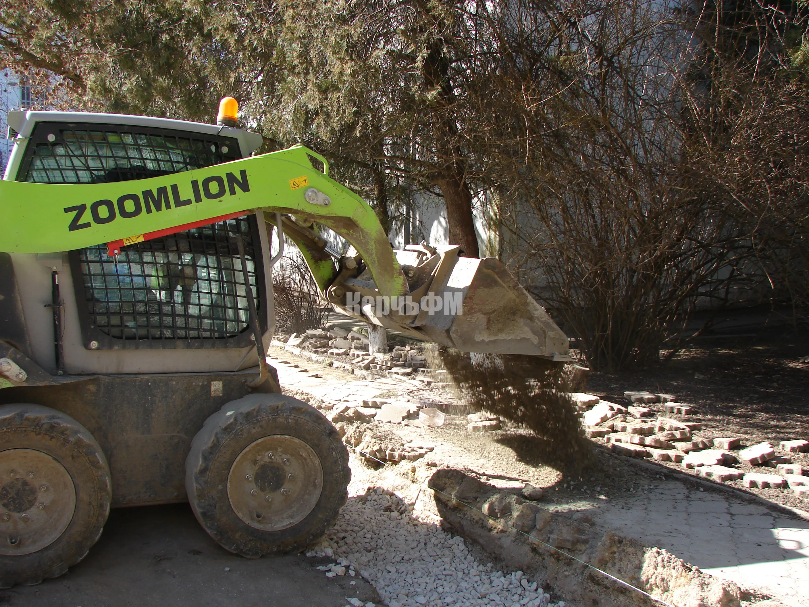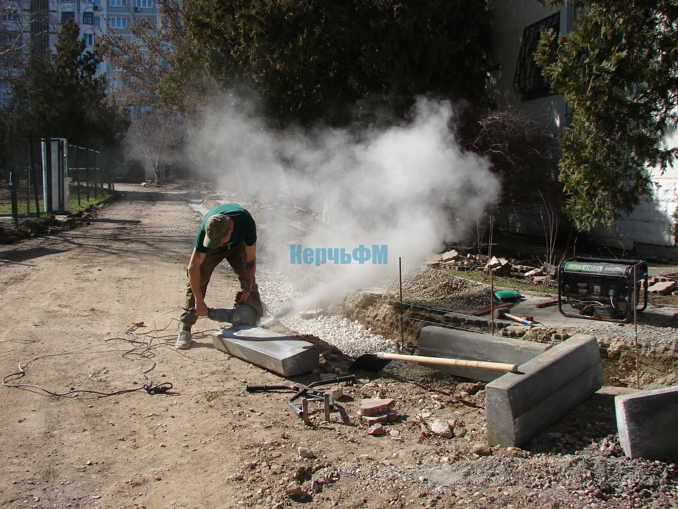 У здания Фонда социального страхования в Керчи делают новые тротуары