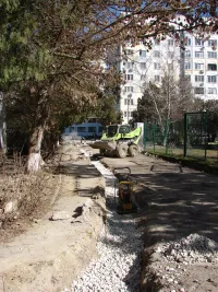 Работы по демонтажу старой плитки с тротуаров и бордюров были проведены заблаговременно.