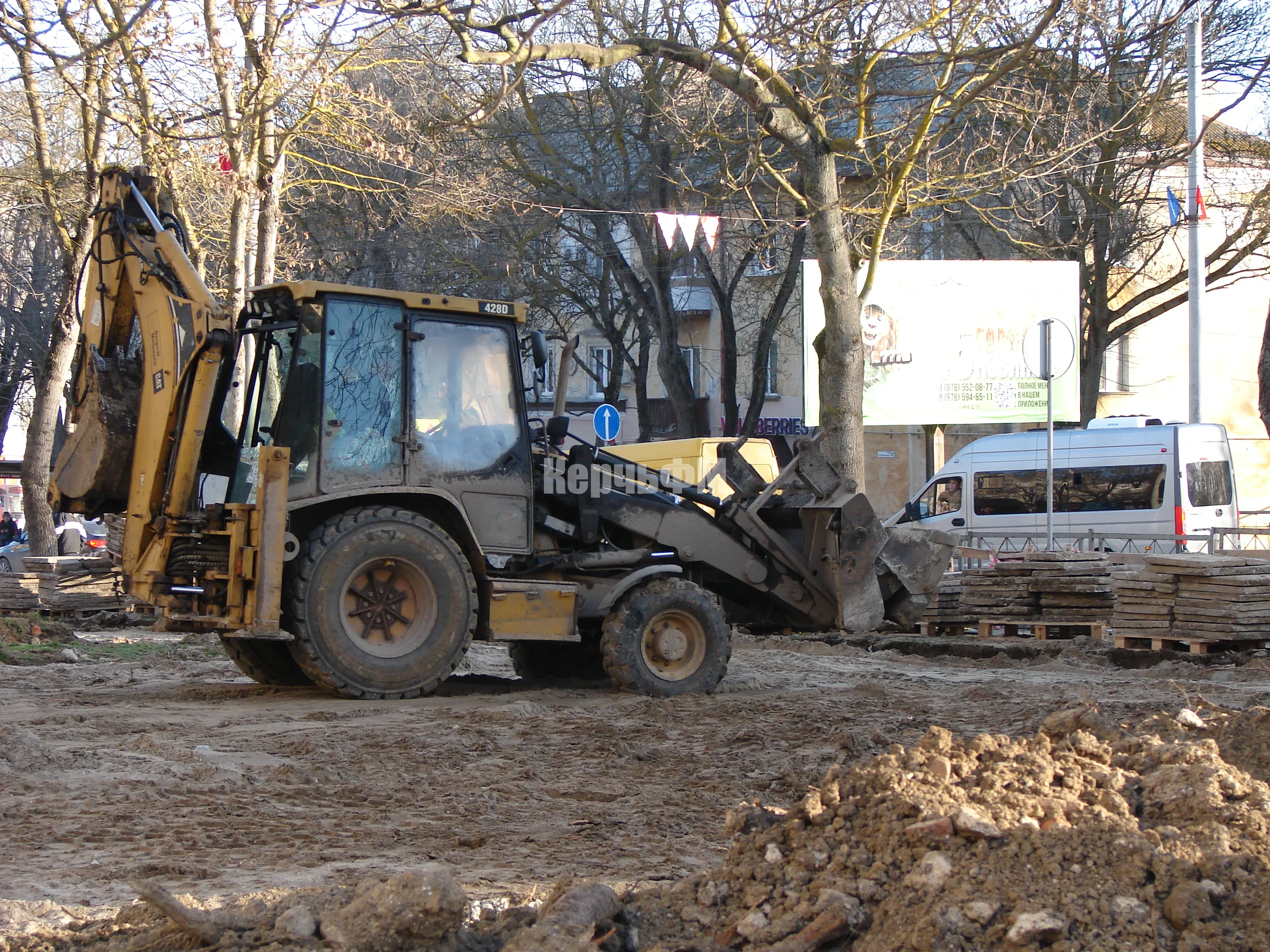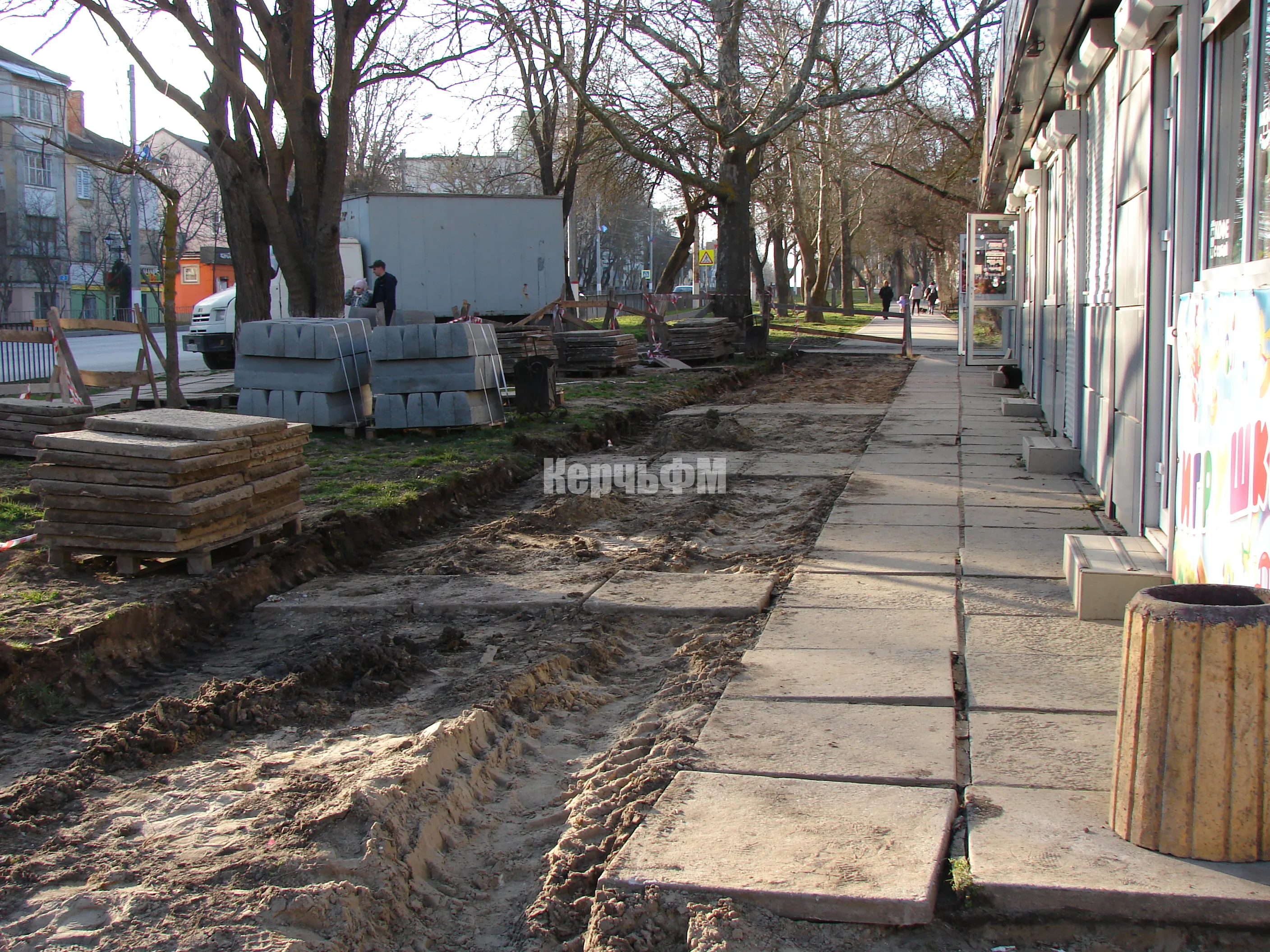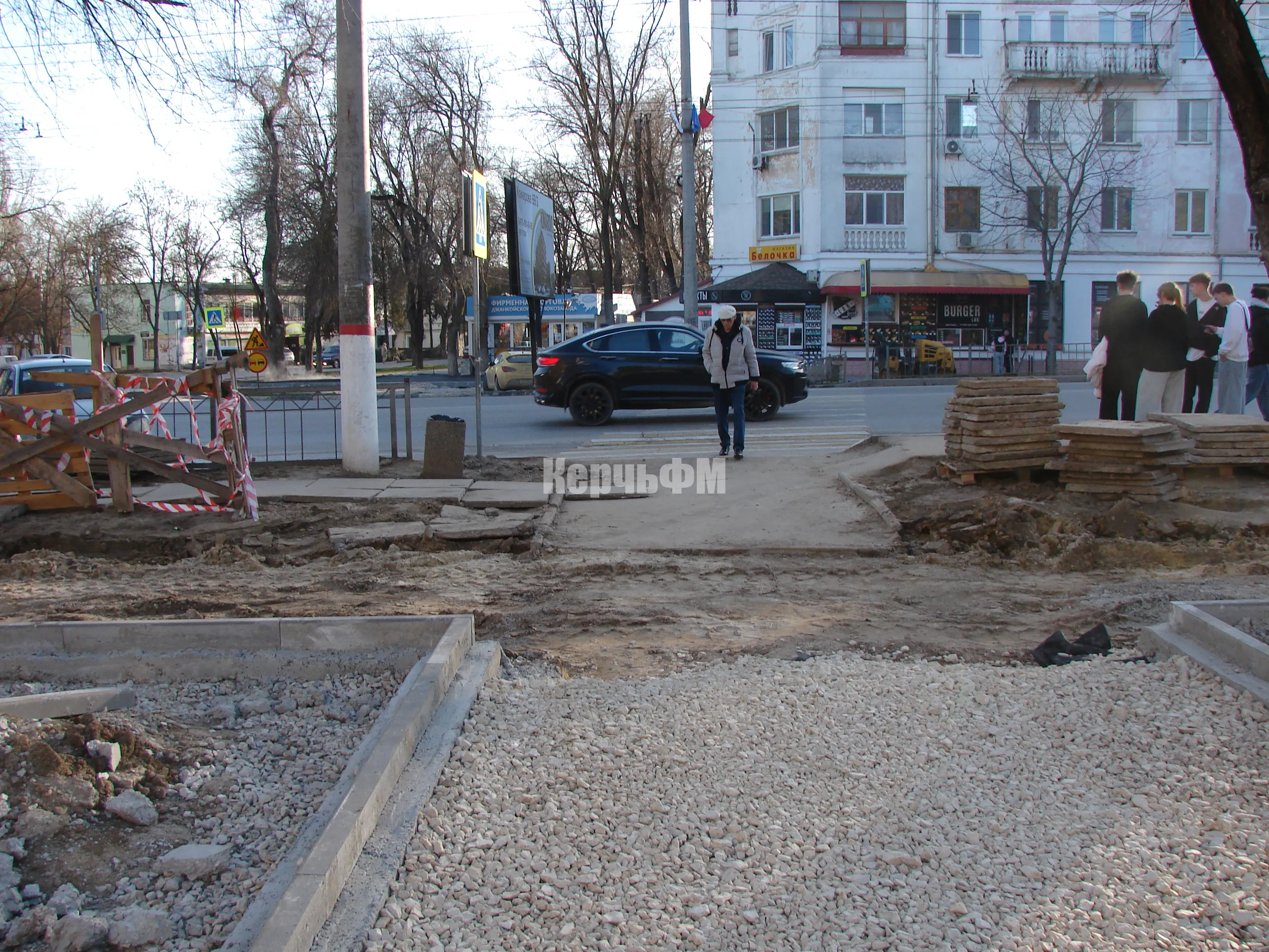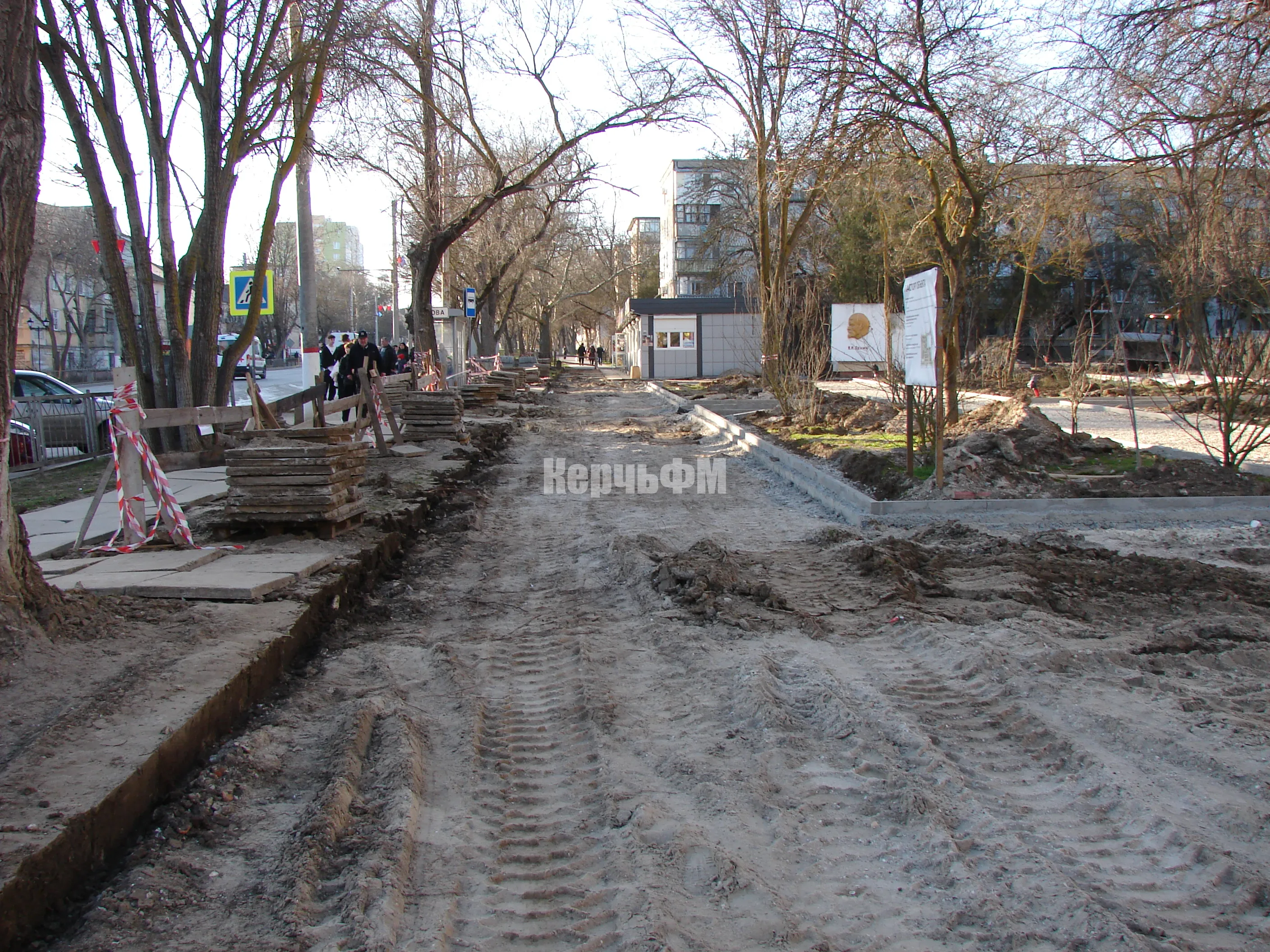 Плиты на самой площади перед центральным входом полностью демонтированы, передает КерчьФМ.