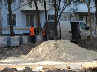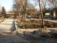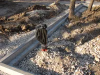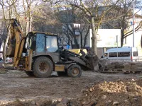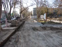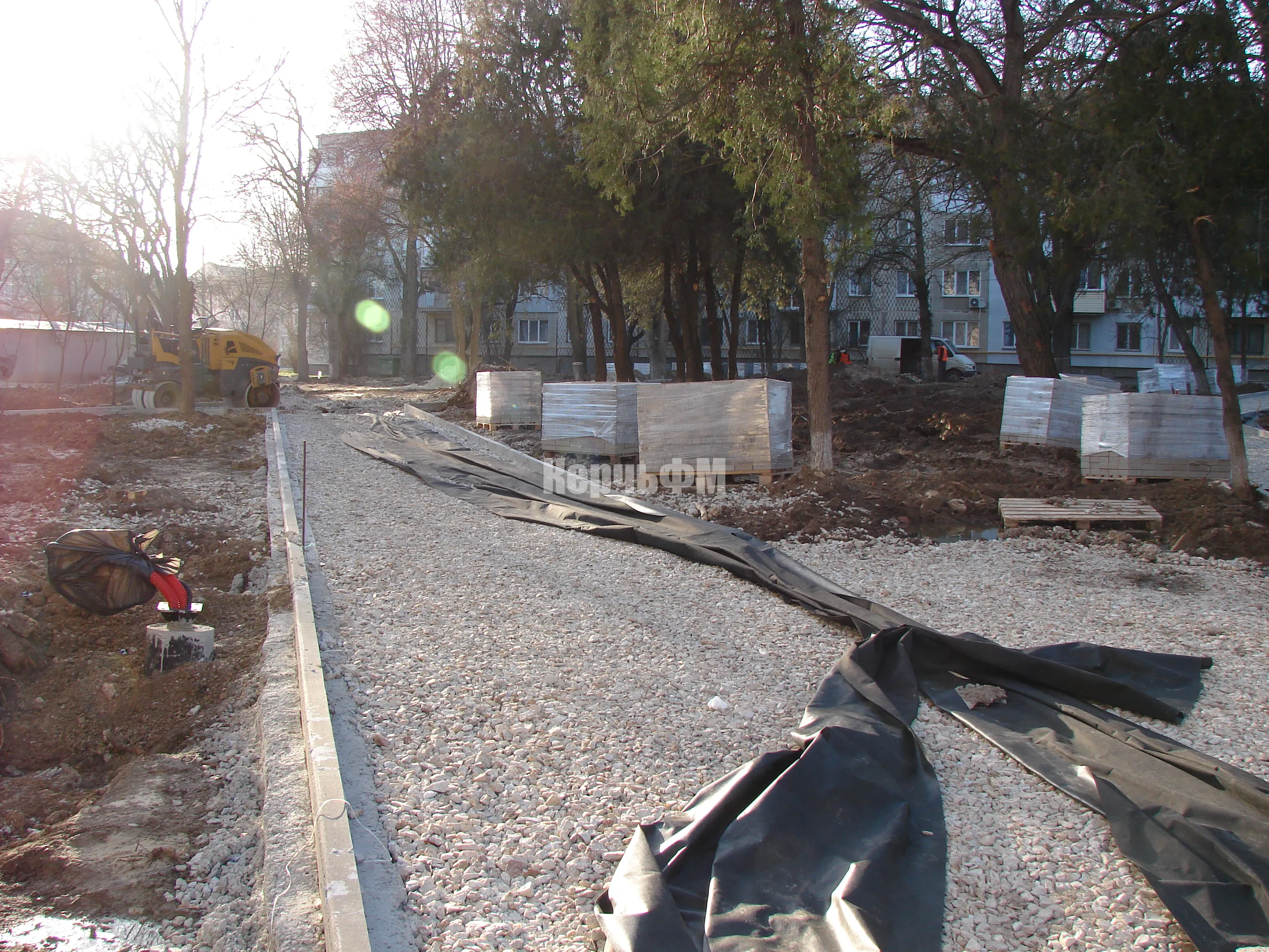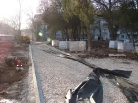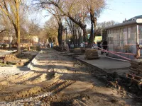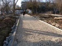 Обустройство бордюров вдоль новых тротуарных дорожек, ведущих через сквер к площади у Школы искусств им. Р. Сердюка, практически завершено.