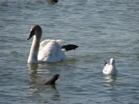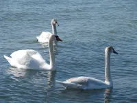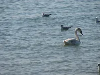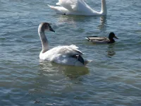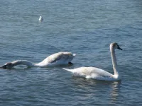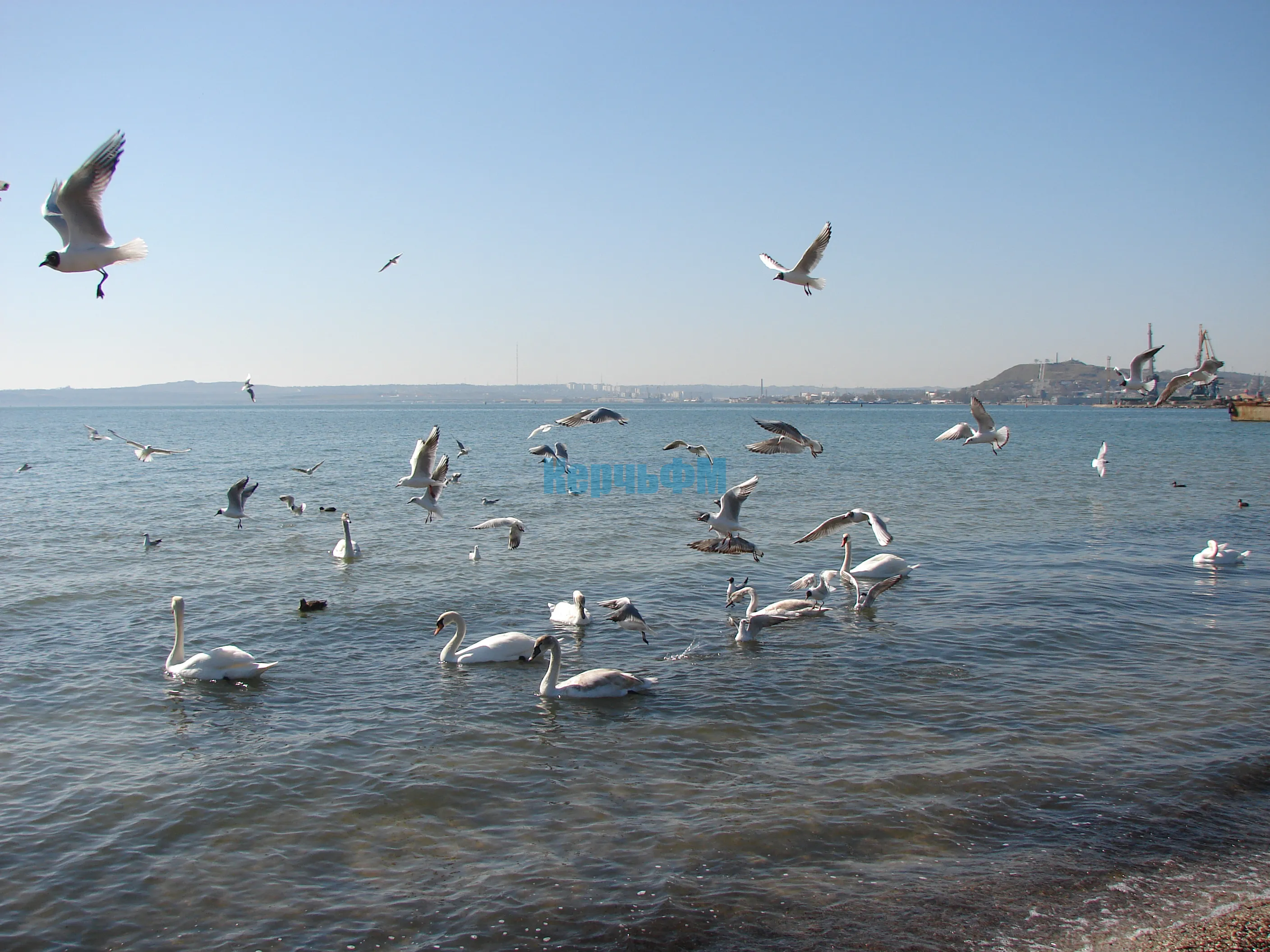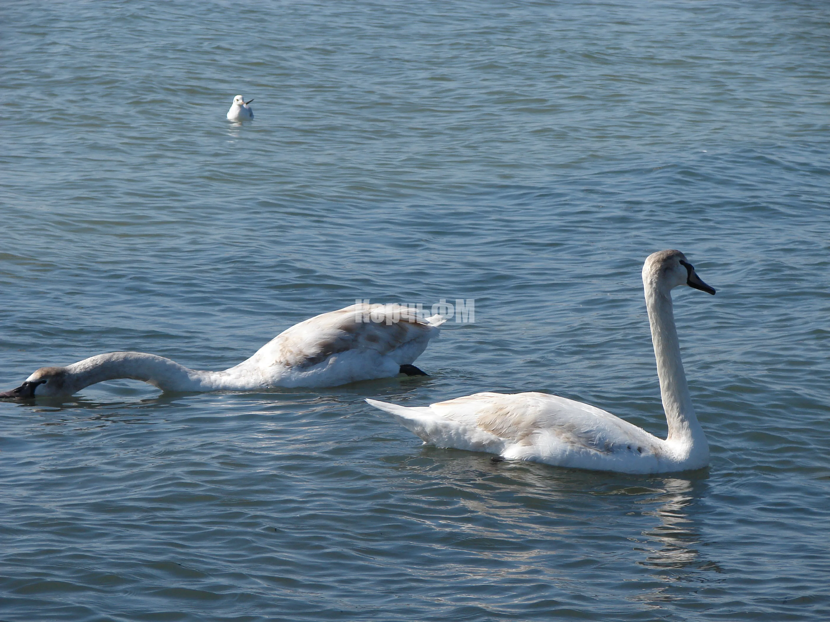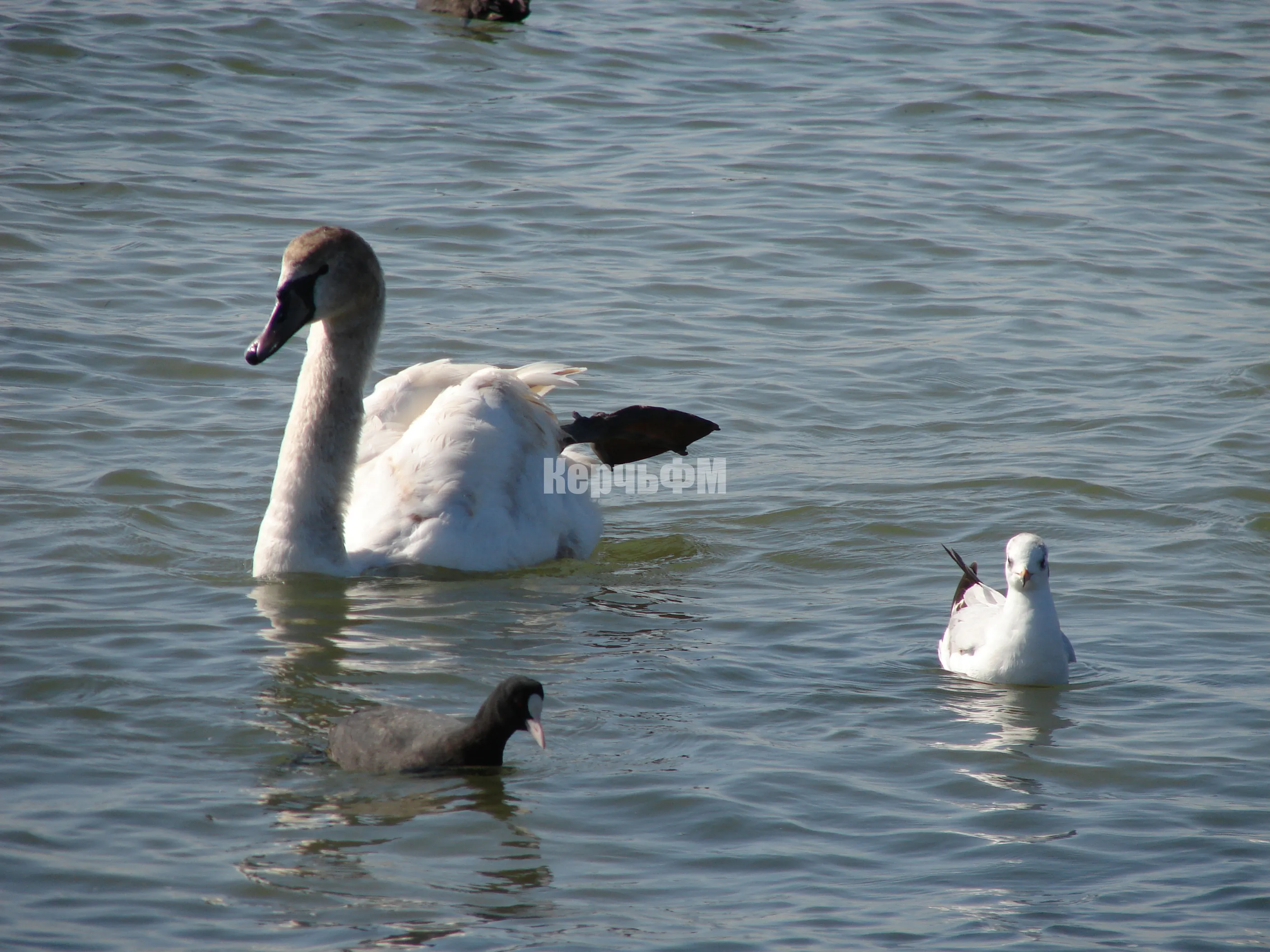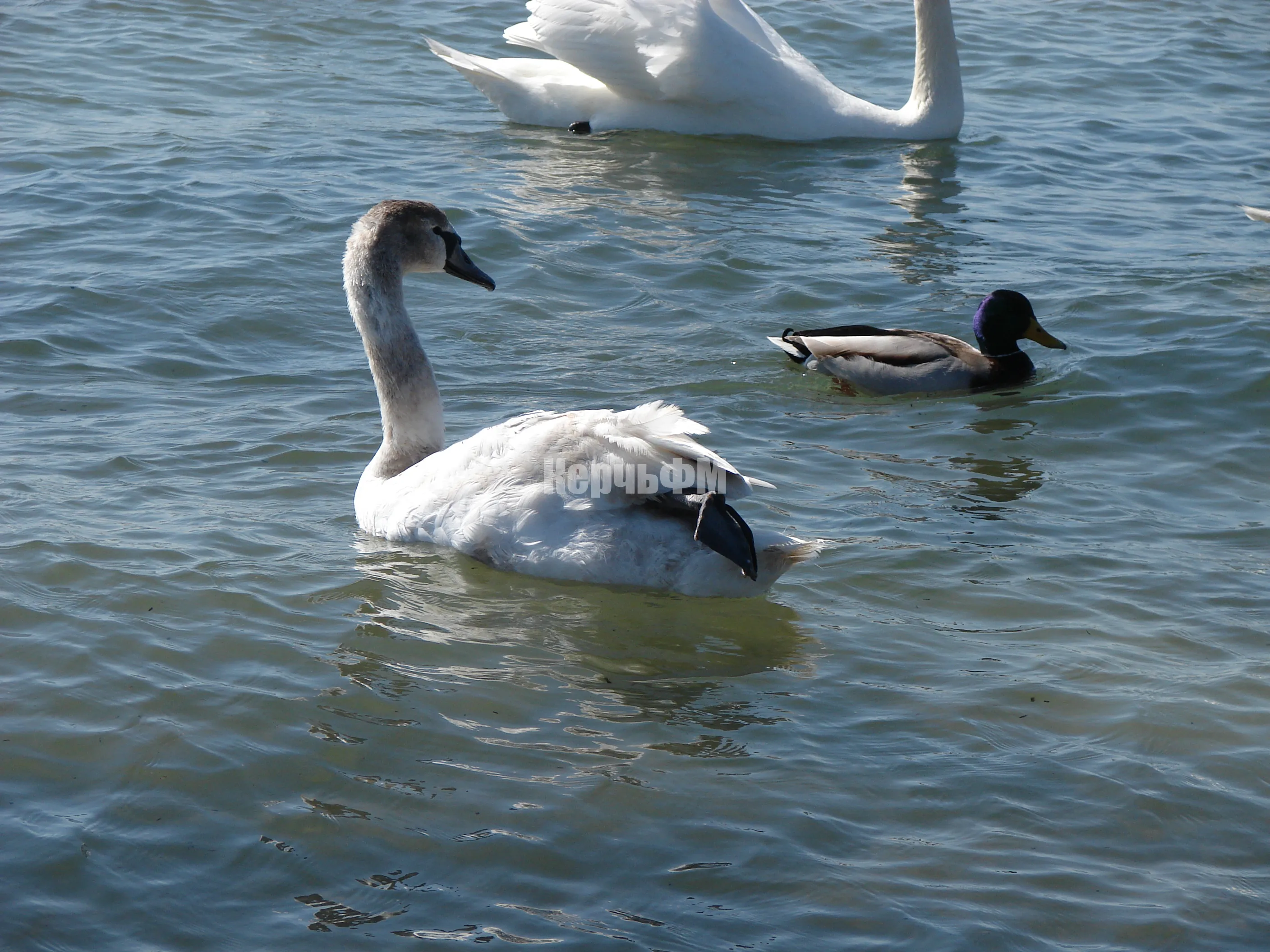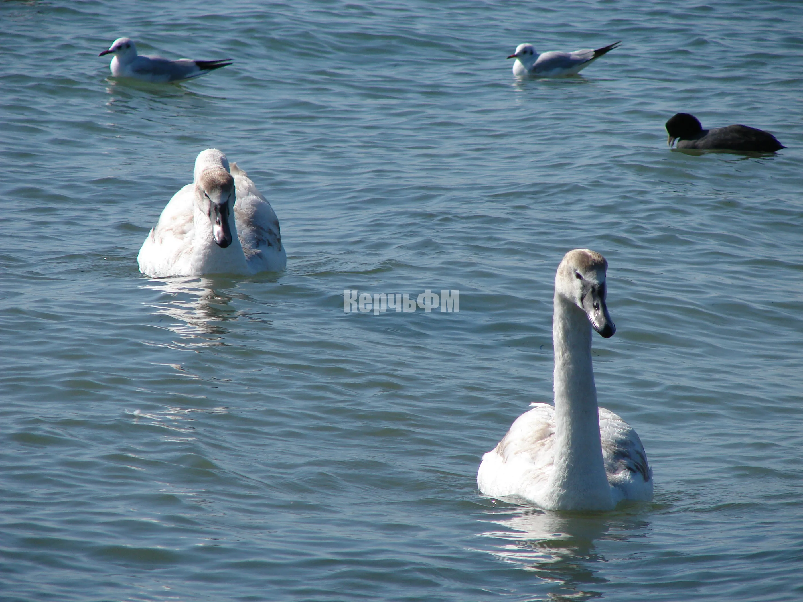 К берегам керченского пролива прилетели лебеди.
