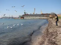 Белые лебеди этой весной в Керчи облюбовали зону отдыха "Черепашка"