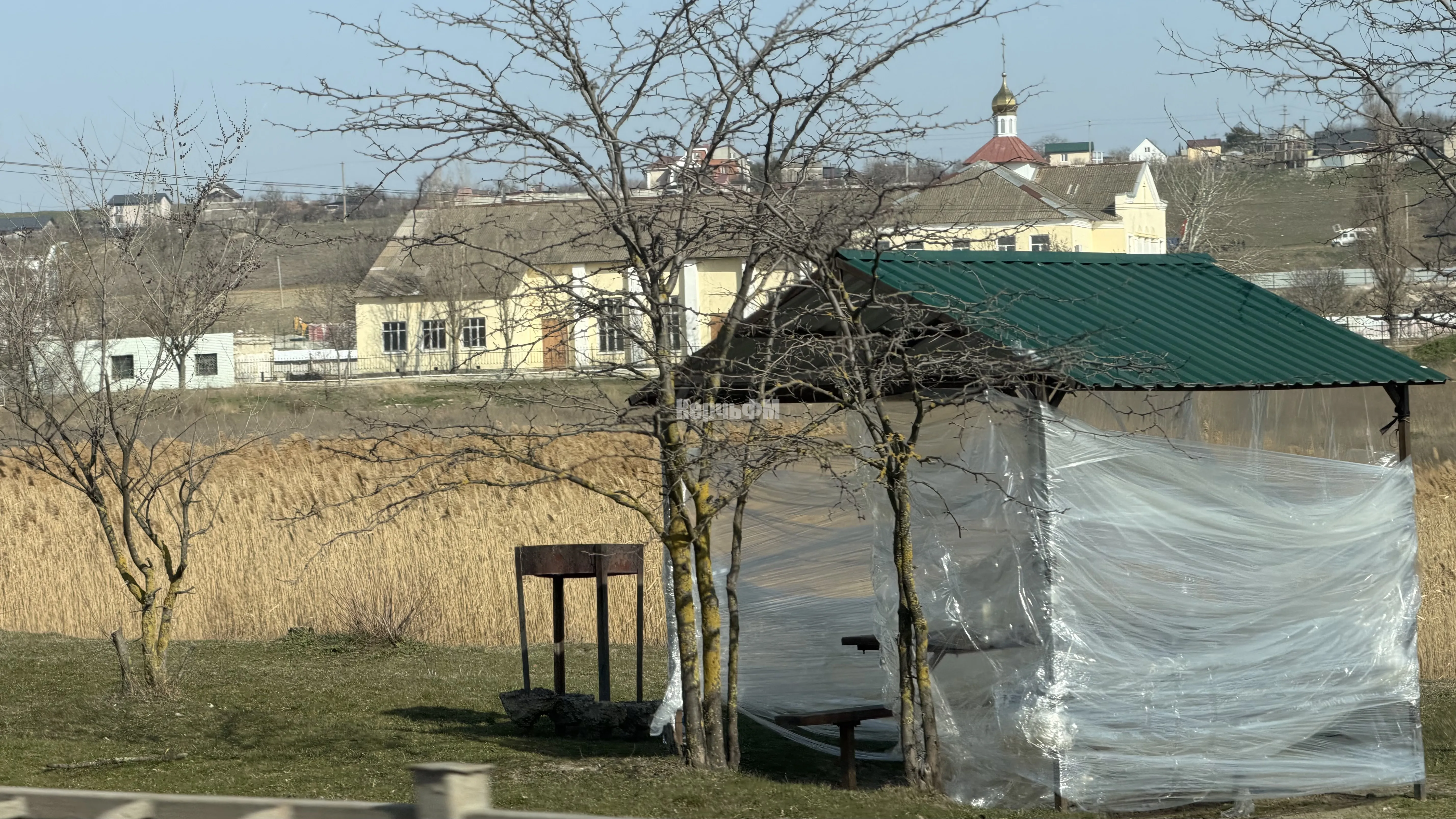 В зоне отдыха на улице Ворошилова в Керчи отдыхающие решили «усовершенствовать» беседки, чтобы защититься от ветра. Горожане закрыли открытые стороны конструкций полиэтиленовой пленкой, - передает КерчьФМ