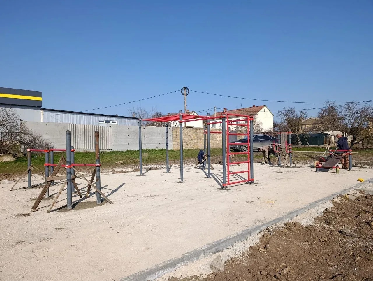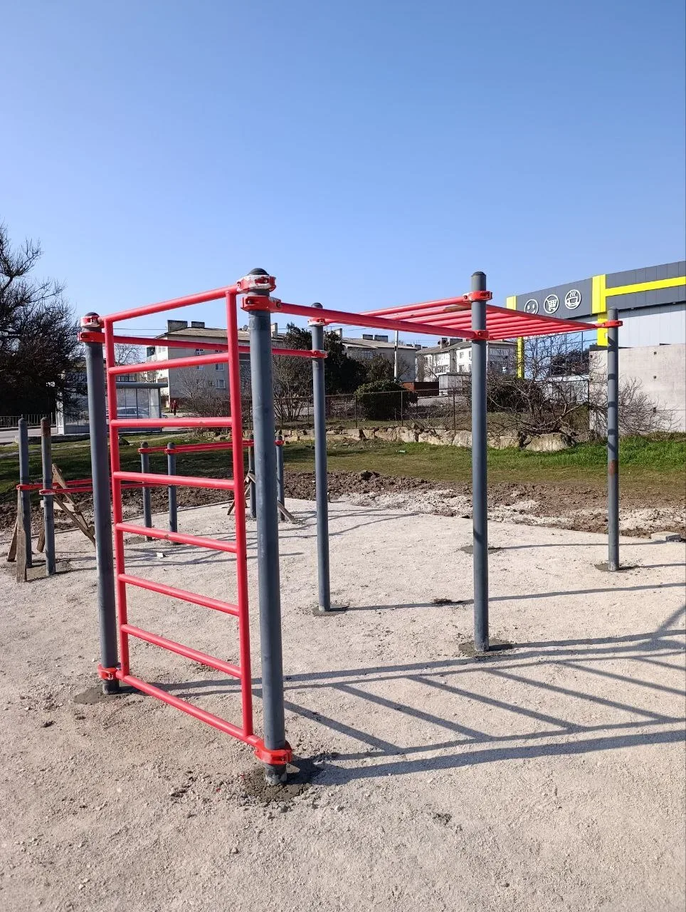 Завершающим этапом станет укладка резинового покрытия, после чего объект станет полностью безопасным для занятий спортом.