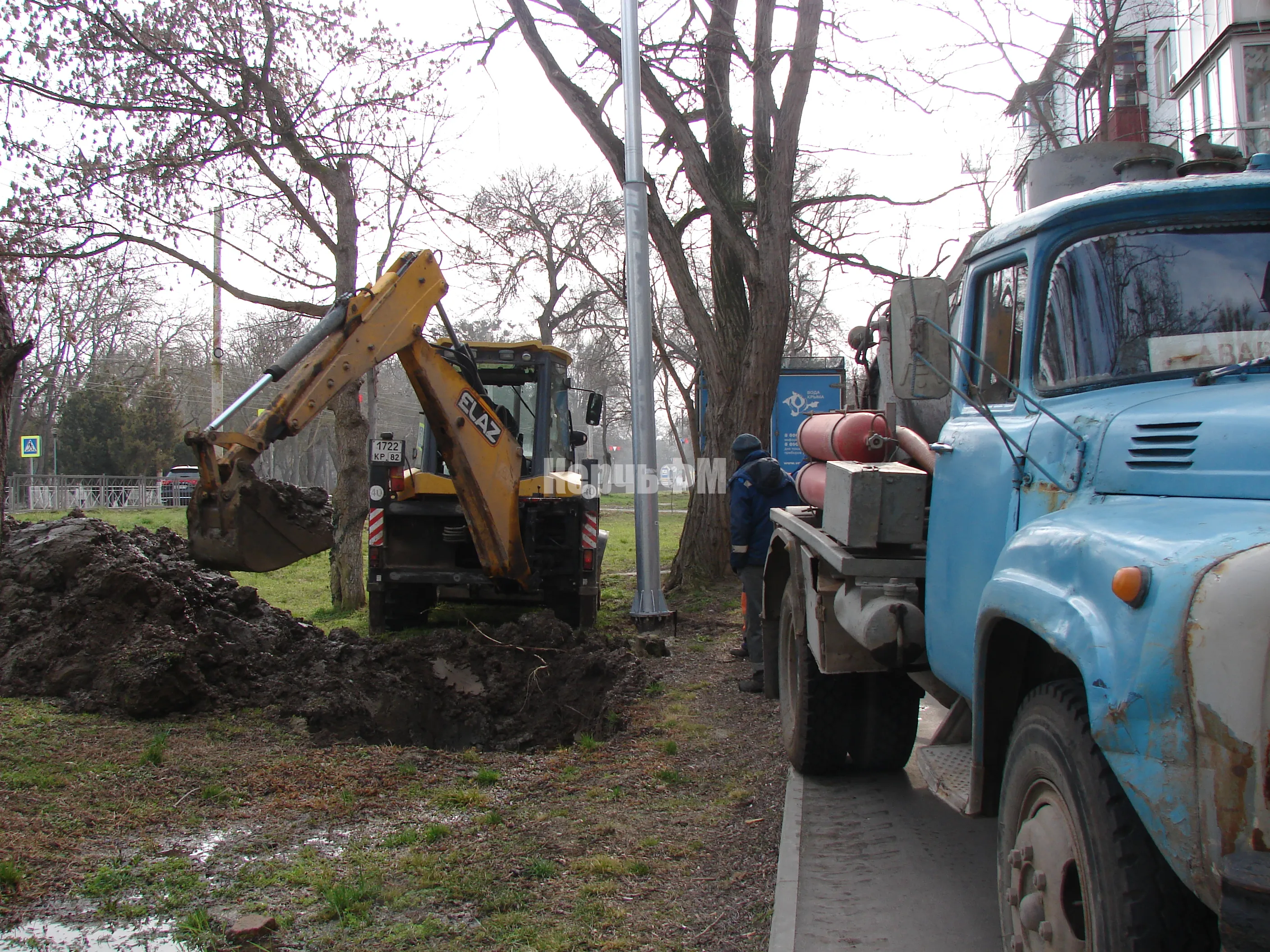 У дома по Войкова, 17 в Керчи водоканал ликвидирует порыв