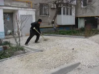 Во дворе по Суворова, 24 в Керчи работы по благоустройству ведутся очень быстрыми темпами