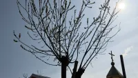 Одно из таких деревьев можно увидеть возле церкви на улице Шлагбаумской.