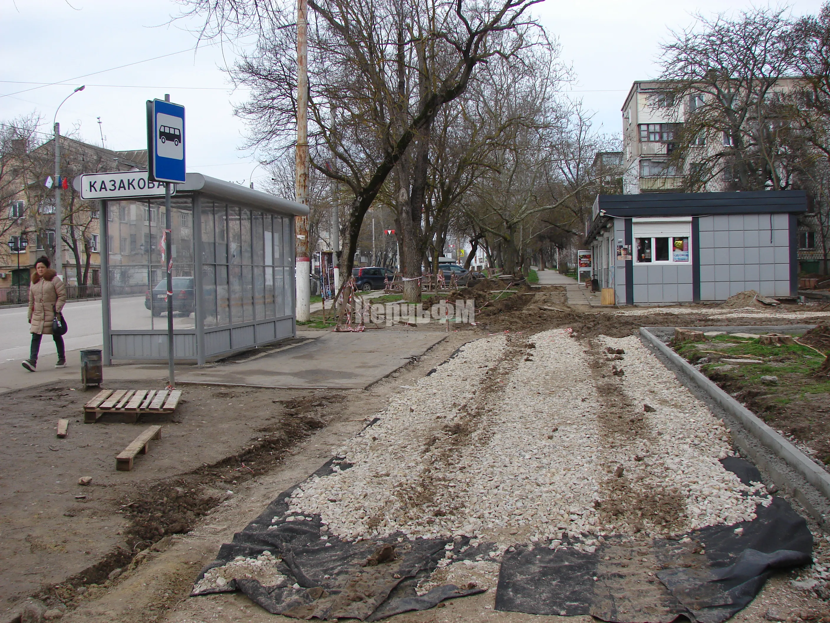 Представитель подрядчика сообщил КерчьФМ, что теперь здесь, а также с другой стороны, за остановкой "Казакова", уложат бордюры, подготовят основание под укладку тротуарной плитки.