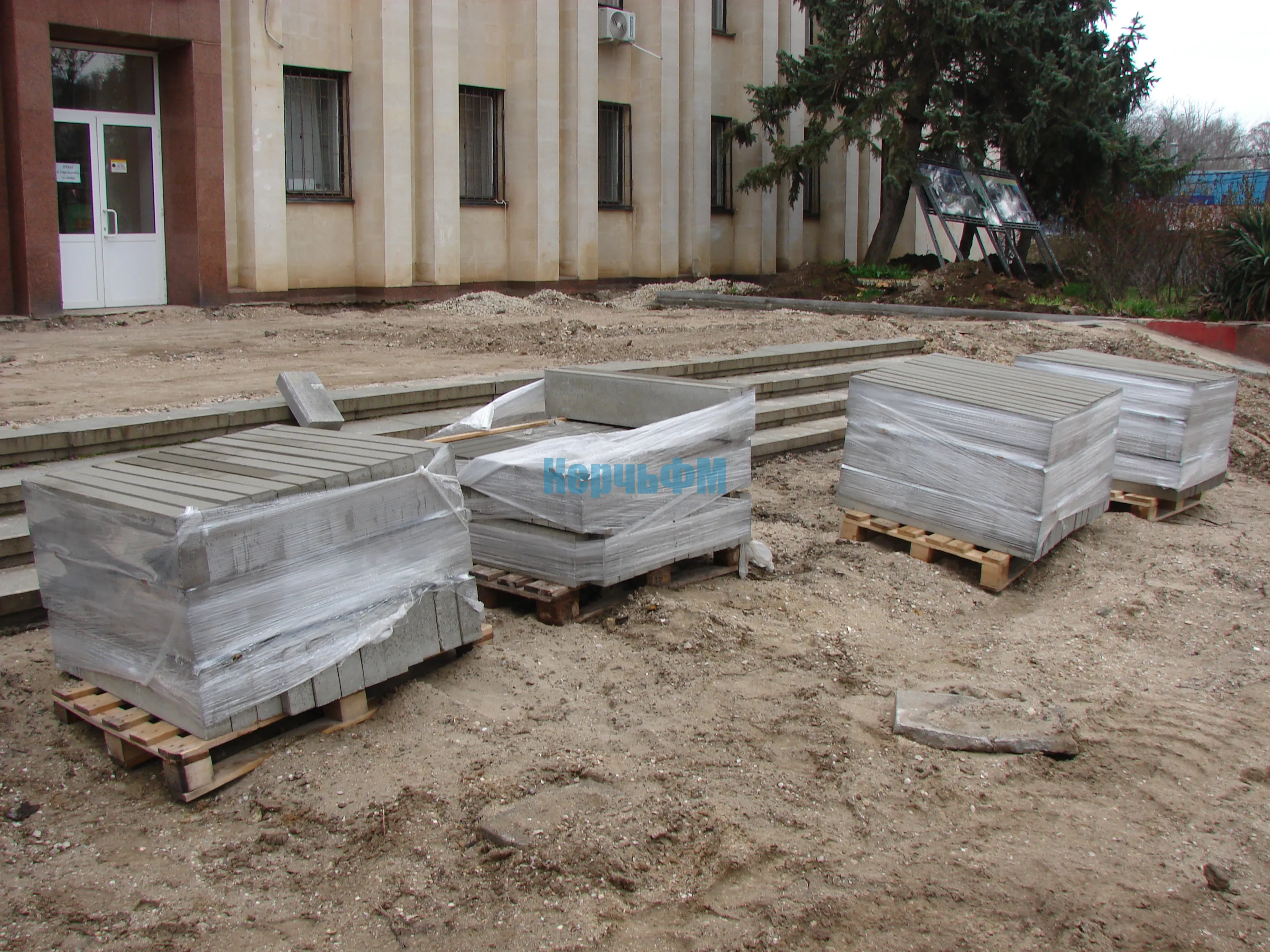 Их, как и аллеи, ведущие к центральному входу в здание, обнесли новым поребриком.