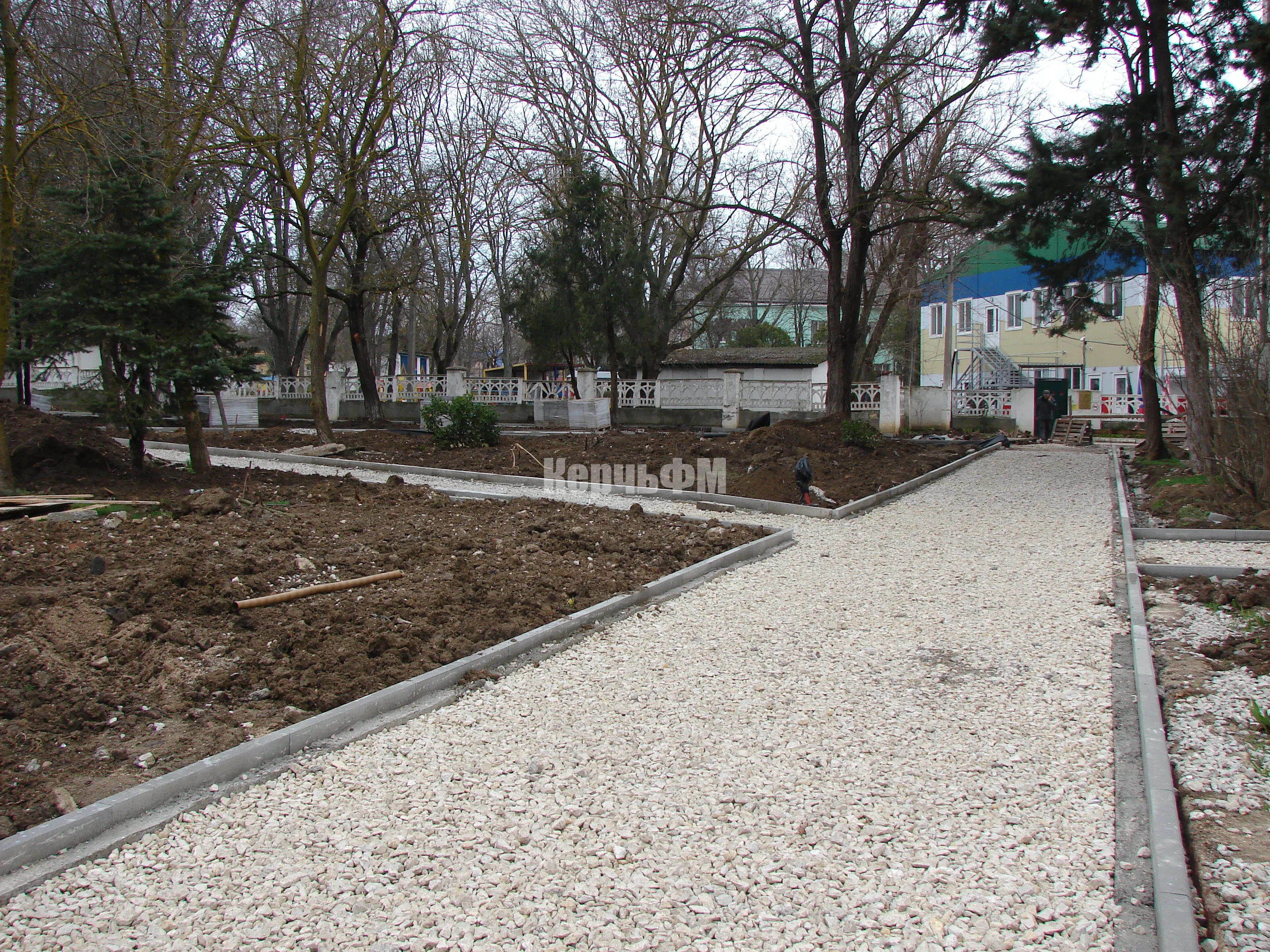 В ходе благоустройства территории у Школы искусств им. Р. Сердюка в прилегающем сквере были сделаны новые пешеходные дорожки.