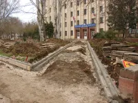 Установка бордюров у Школы искусств им. Р. Сердюка в Керчи завершена на 80%