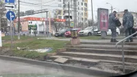 Напомним, что недавно здесь покрасили поручни, видимо решили, что так передвижение на этом участке станет комфортнее.