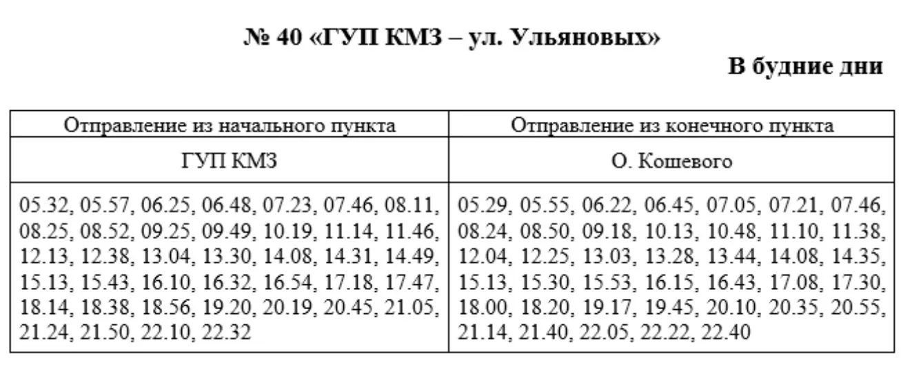 В Керчи с 31 марта  в ТЕСТОВОМ режиме будет изменено расписание движения автобусов на муниципальном маршруте регулярных перевозок №40 «ГУП КМЗ - ул. Ульяновых» (в будние дни). Об этом сообщает пресс-служба администрации, - передает КерчьФМ.