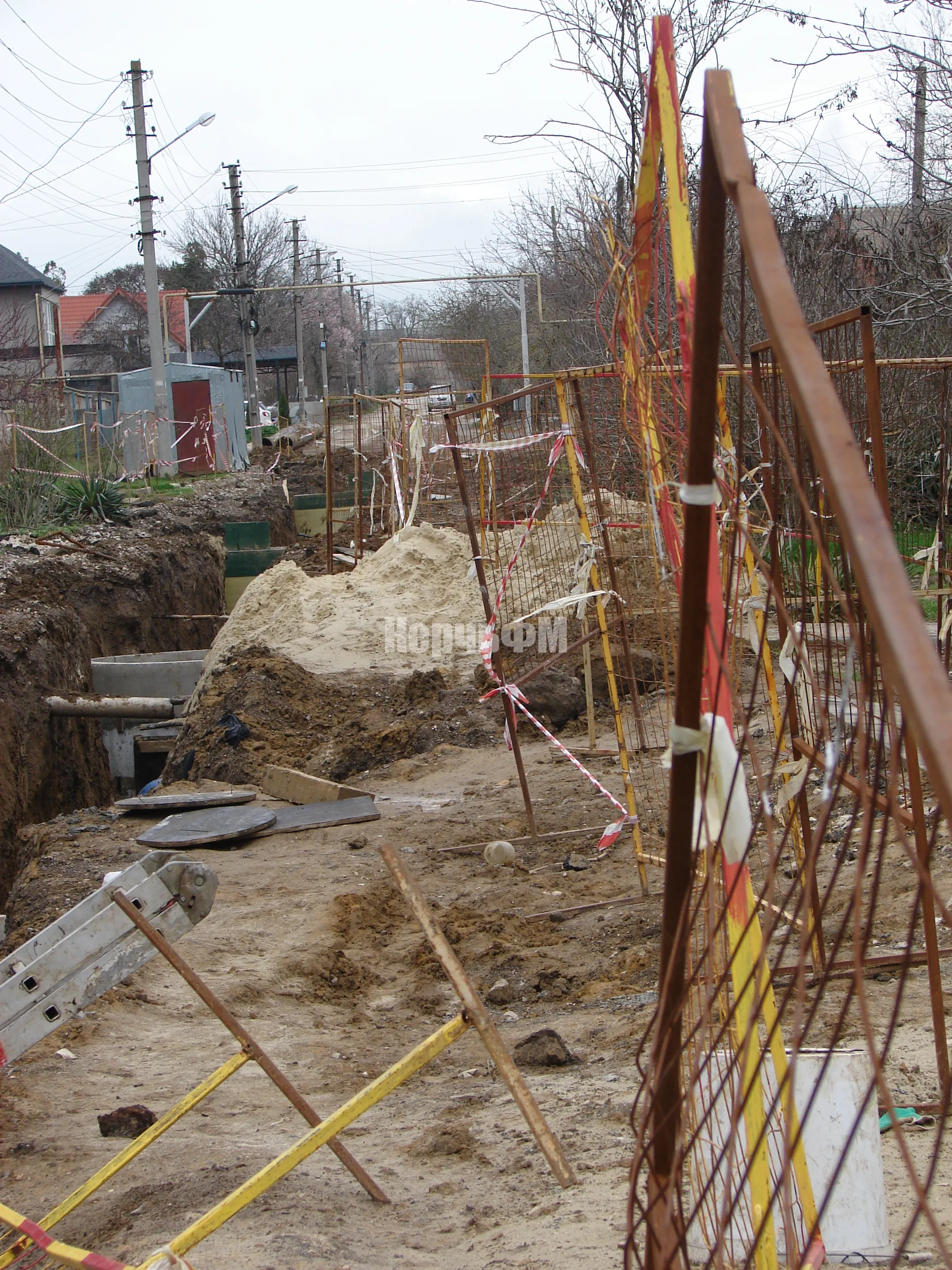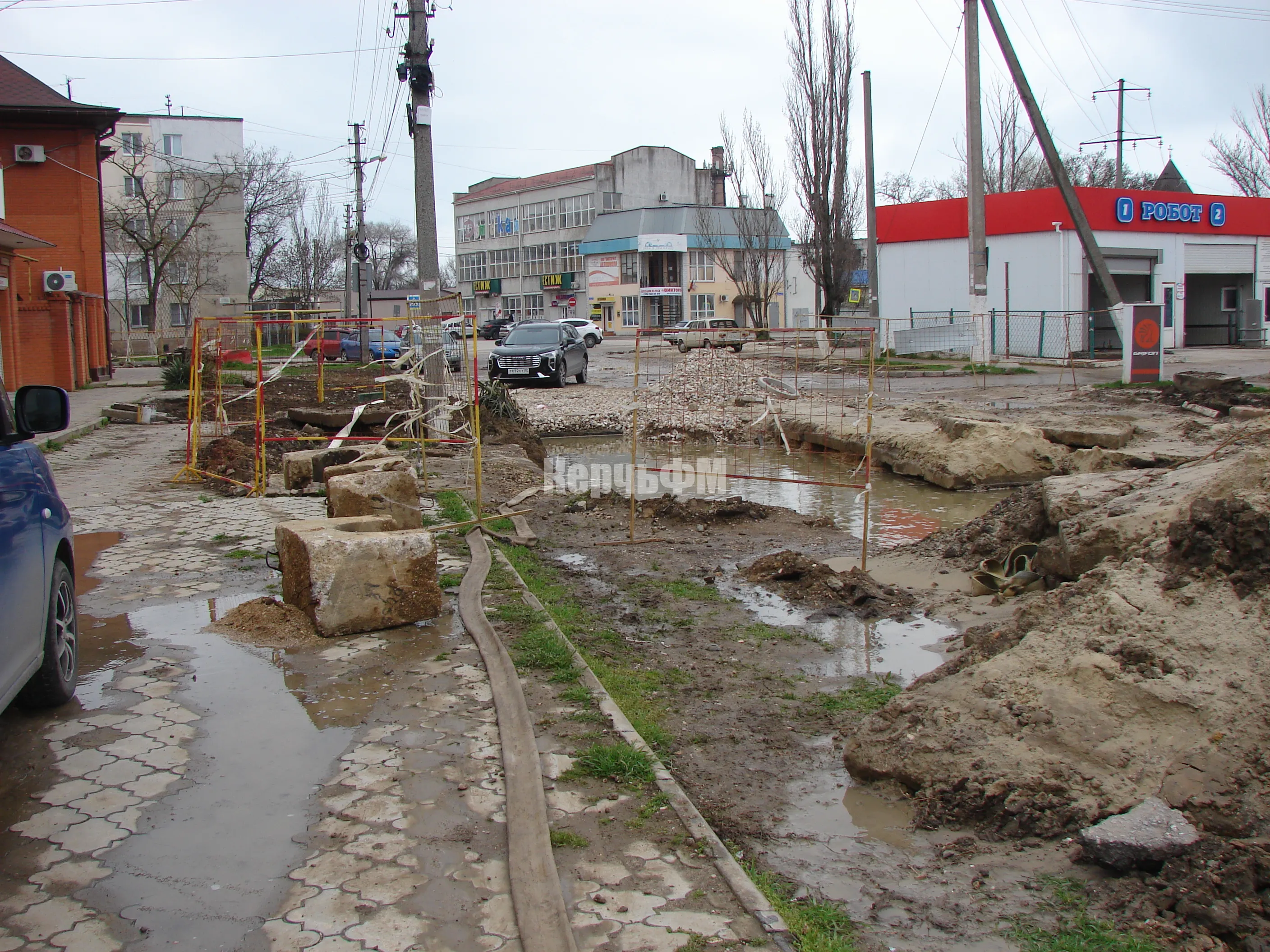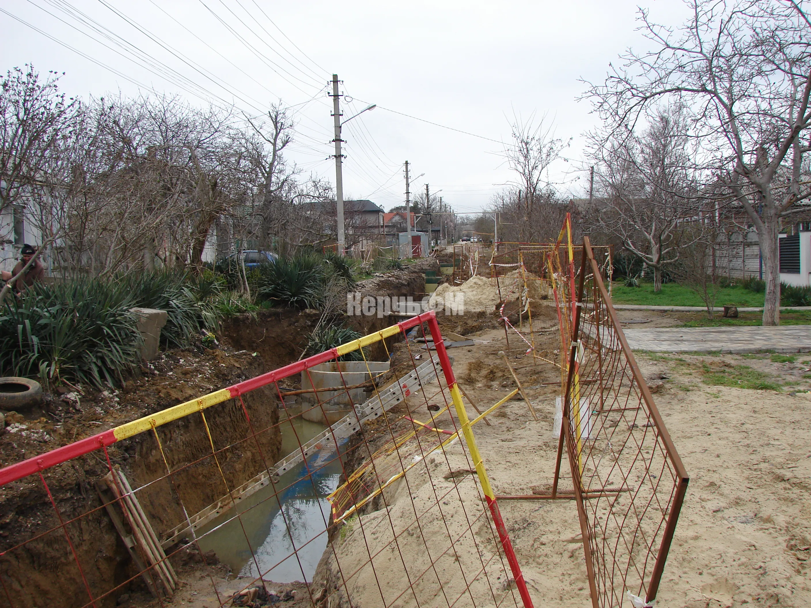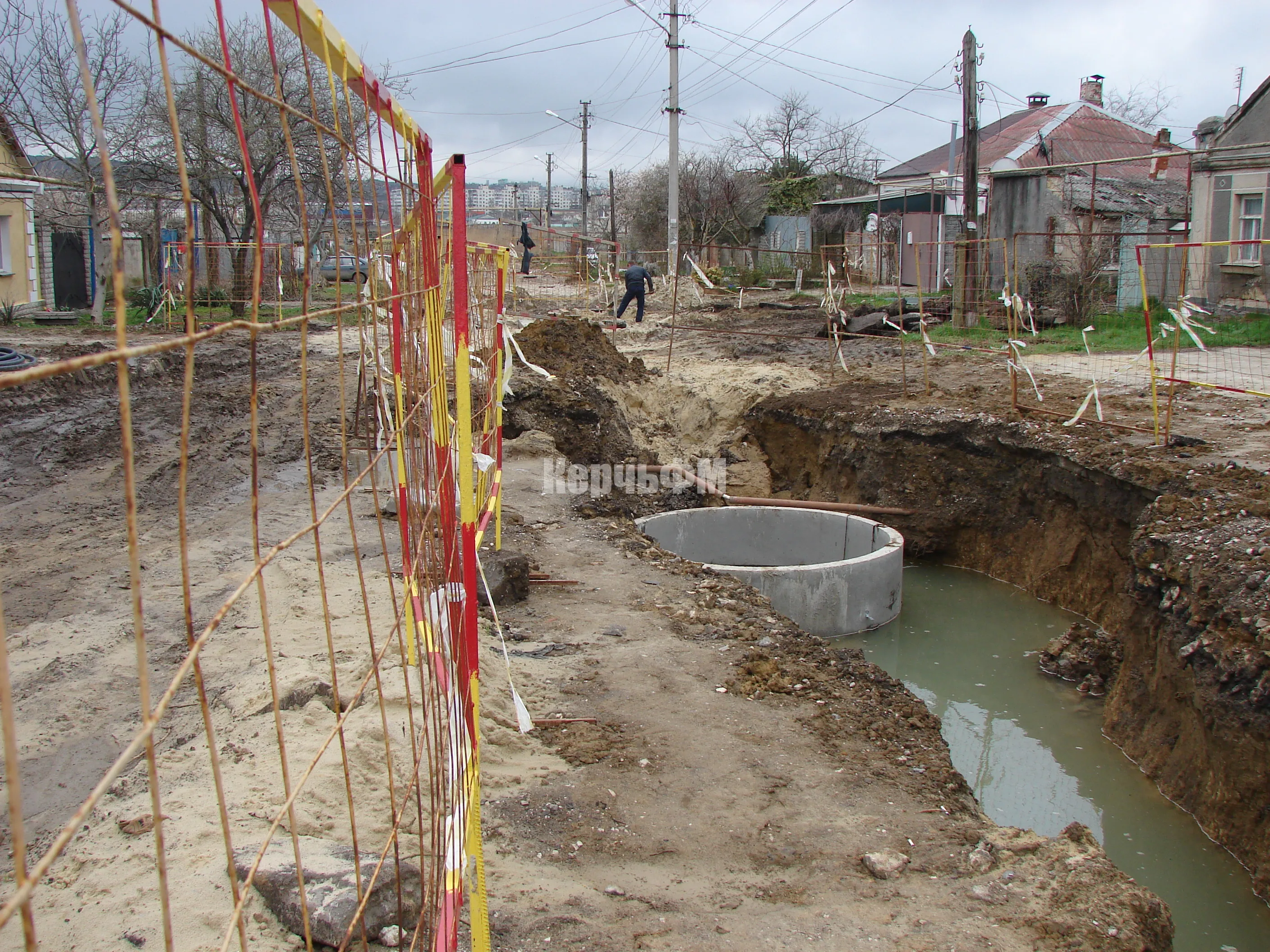 Подрядчик "Мастер Юг" продолжает укладывать новый водовод на улице Бодни, передает КерчьФМ.