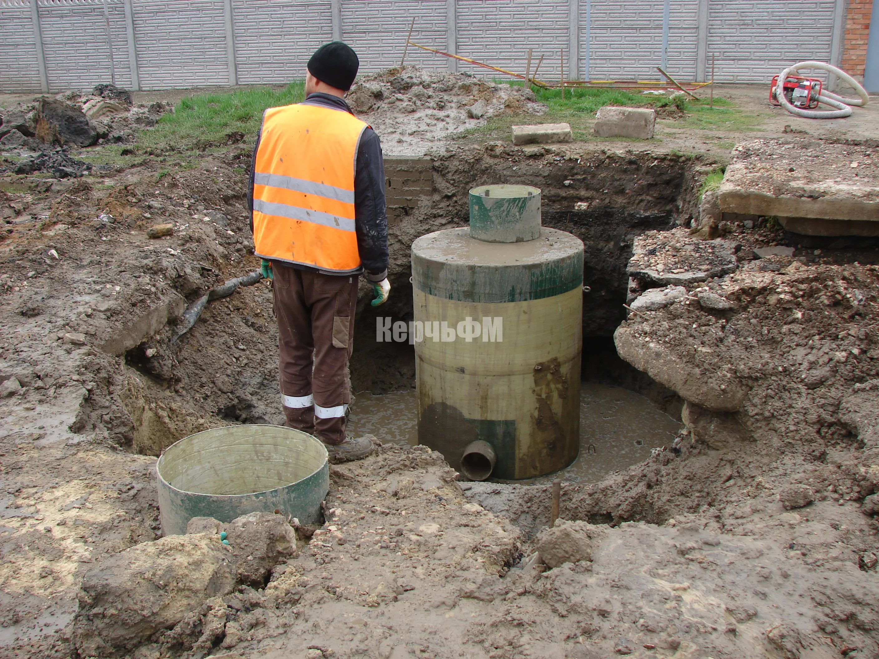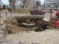 В траншею укладывают новые трубы и устанавливают колодцы.