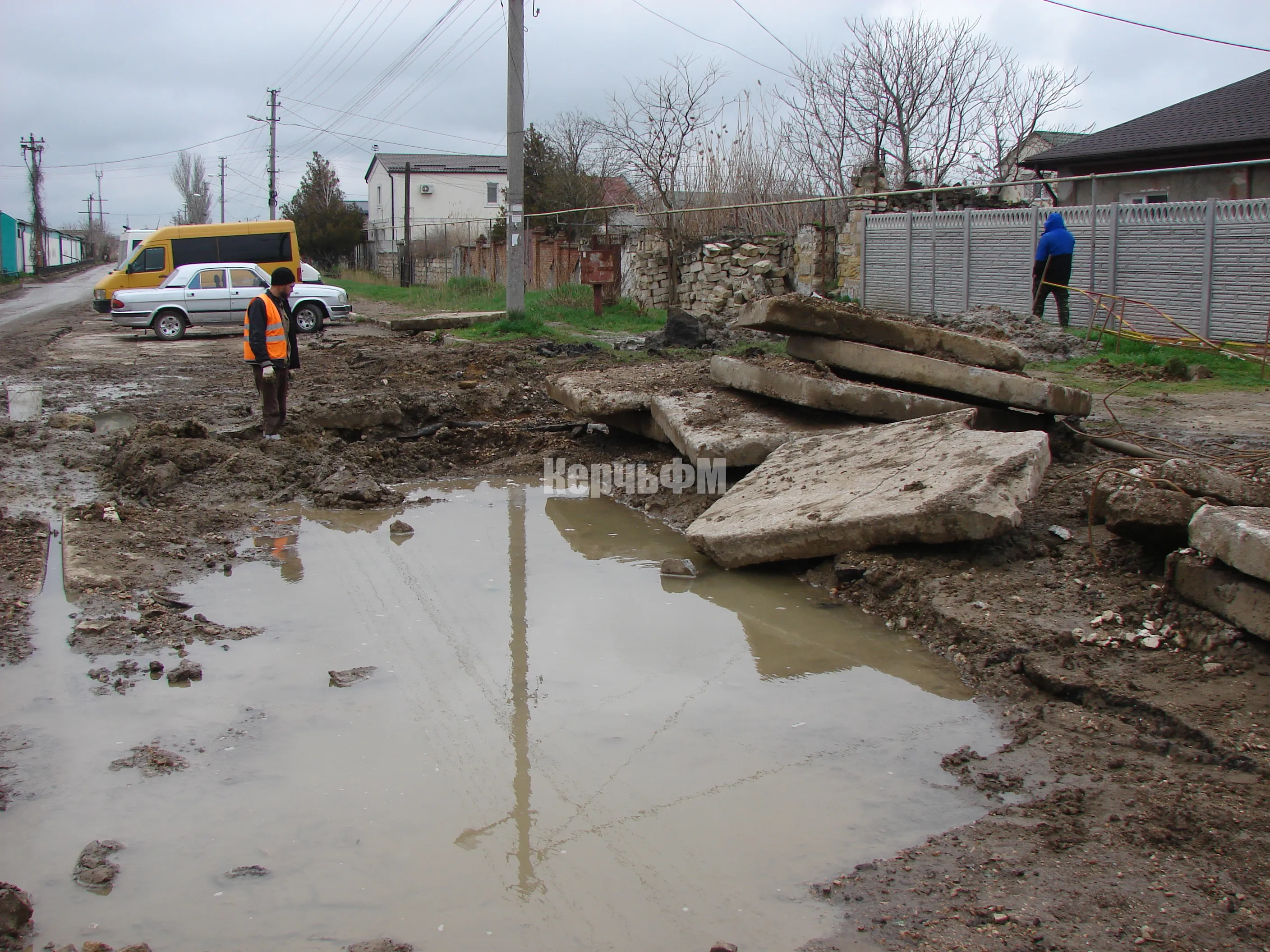 По словам рабочих, она скапливается в результате сильных грунтовых вод и протечек старых труб водовода.