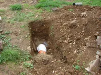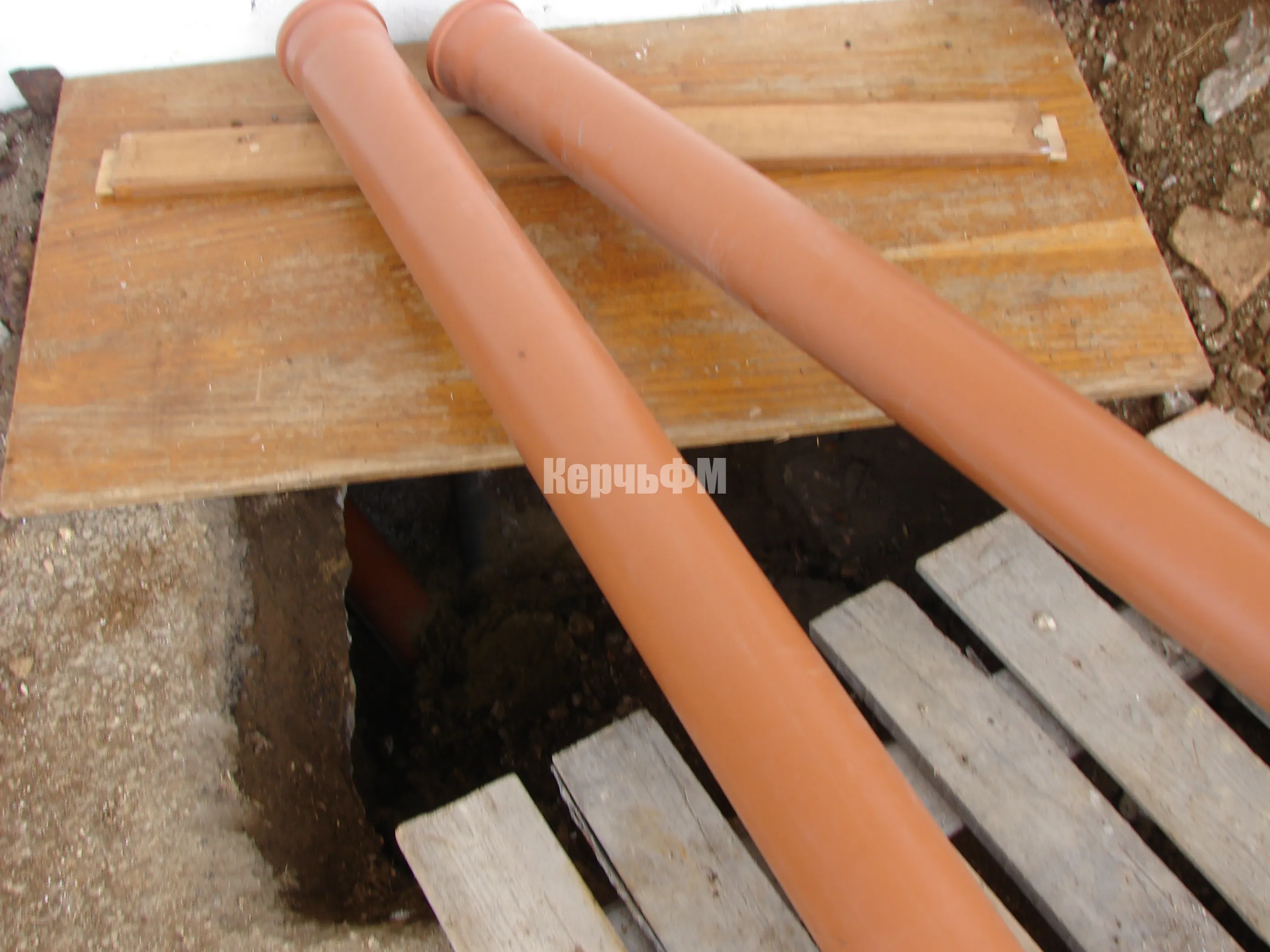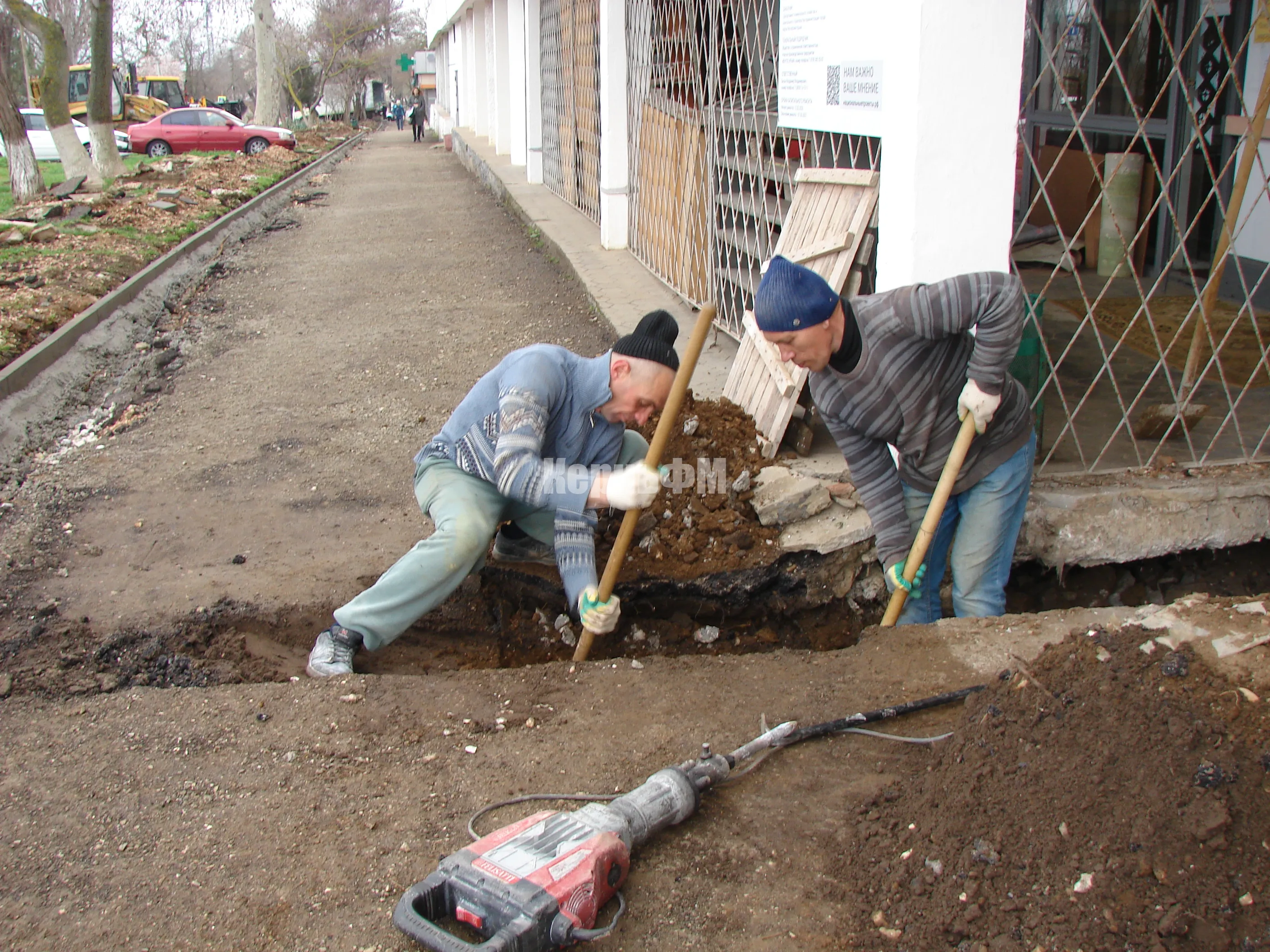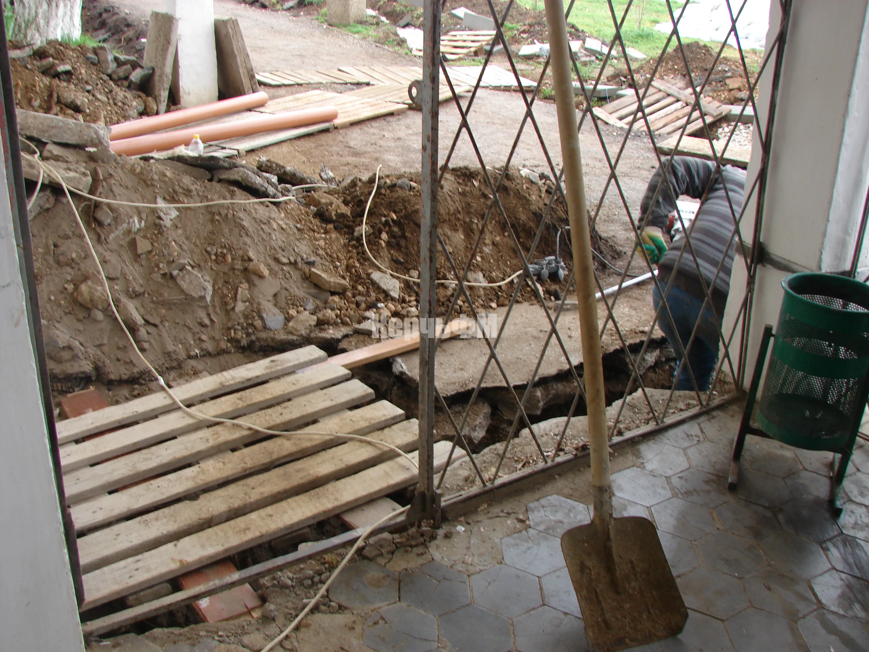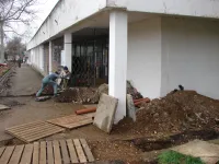 Сегодня внимание строительной бригады сосредоточено на замене труб водоотведения у входа в здание библиотеки.