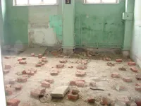 На сегодняшний день старые деревянные полы там полностью демонтировали.