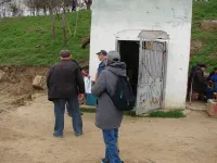 Керчане подходят к представителю подрядчика и засыпают его вопросами.