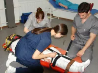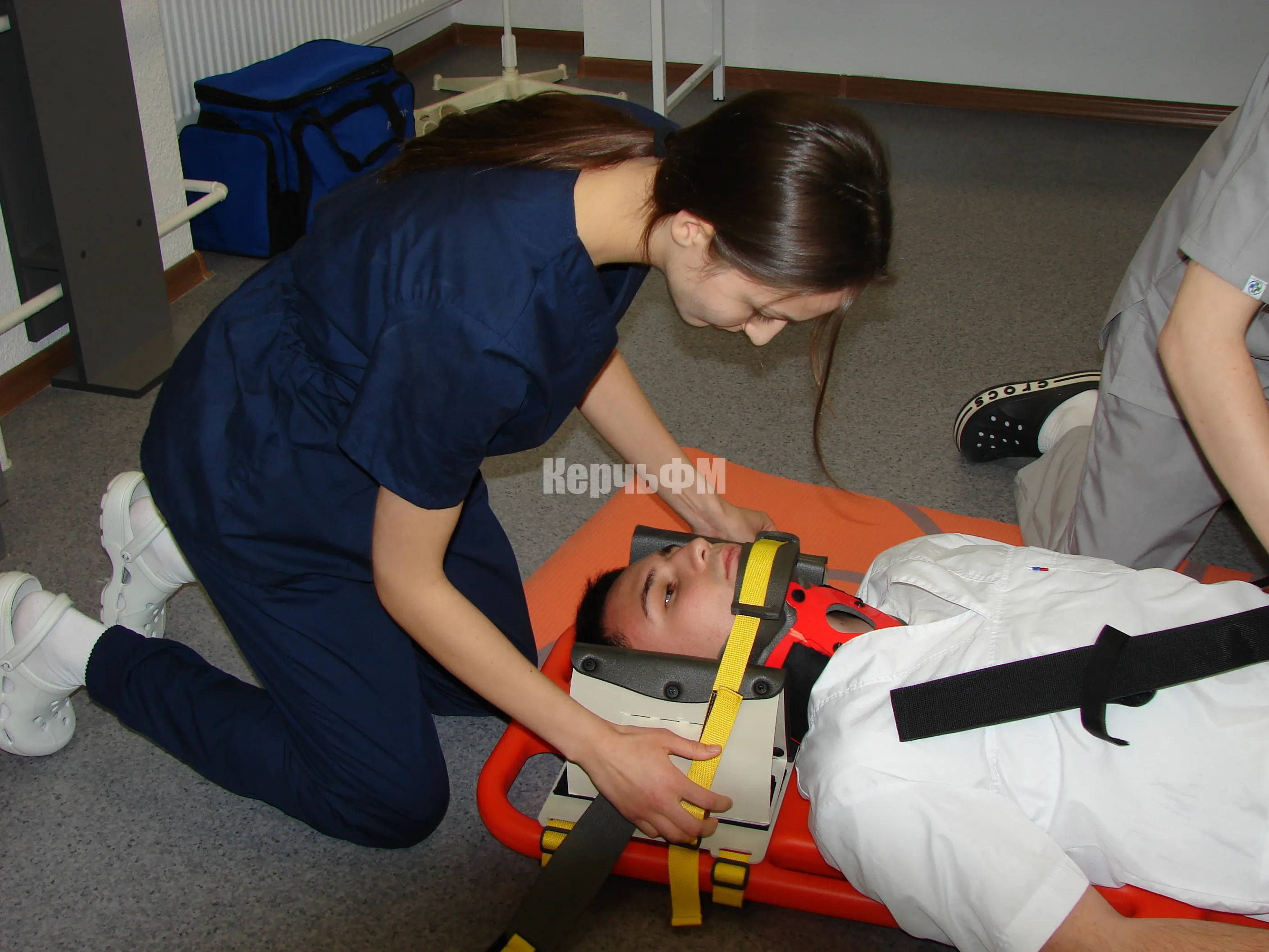 Свои навыки в оказании первой помощи, по сценарию пострадавшему в результате падения с высоты, продемонстрировали студенты.